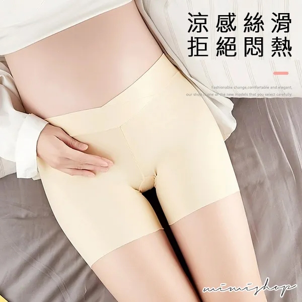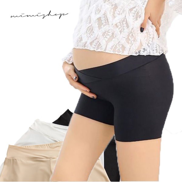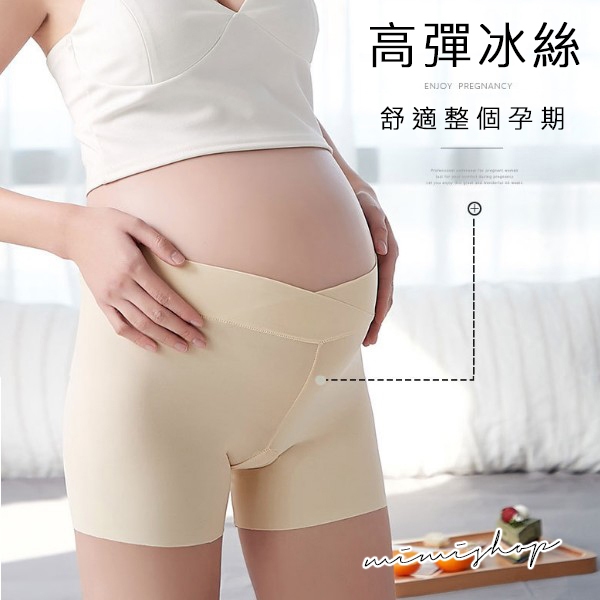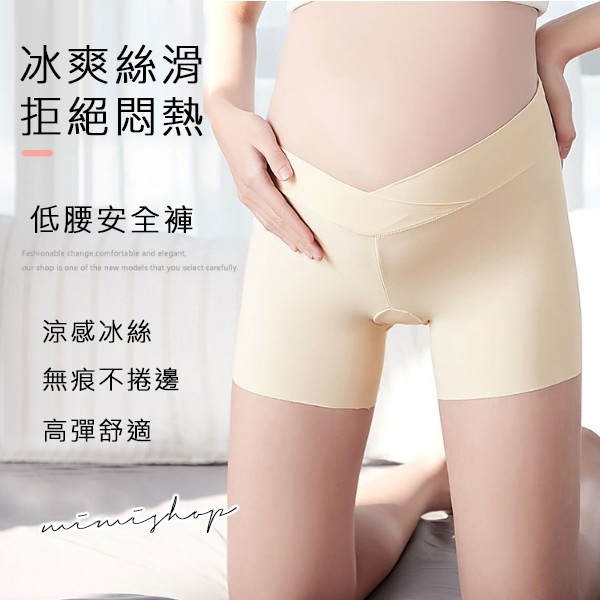 MIMI別走孕婦裝 孕婦安全褲 涼感冰絲 低腰無痕 不捲邊彈力孕婦褲 安全褲 【P61478】