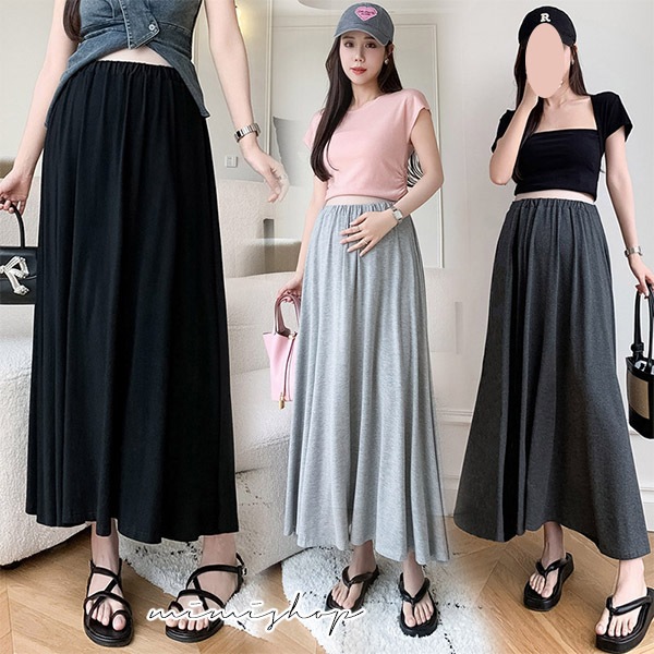 MIMI別走孕婦裝 優質必備 抗皺彈力寬襬莫代爾長裙 孕婦裙 三色推薦【P62190】