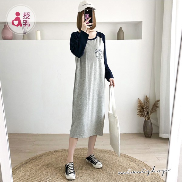 MIMI別走孕婦裝親親小手掌 長袖高棉量哺乳衣 洋裝 坐月子 孕哺兩用【P12224】