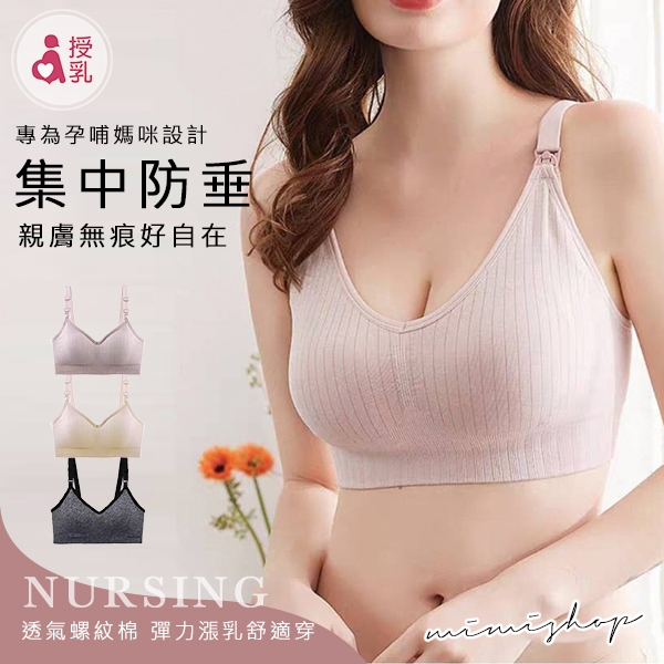 MIMI別走孕婦裝 精選直螺紋 優質集中哺乳內衣 無鋼圈睡眠 防下垂【P72055】