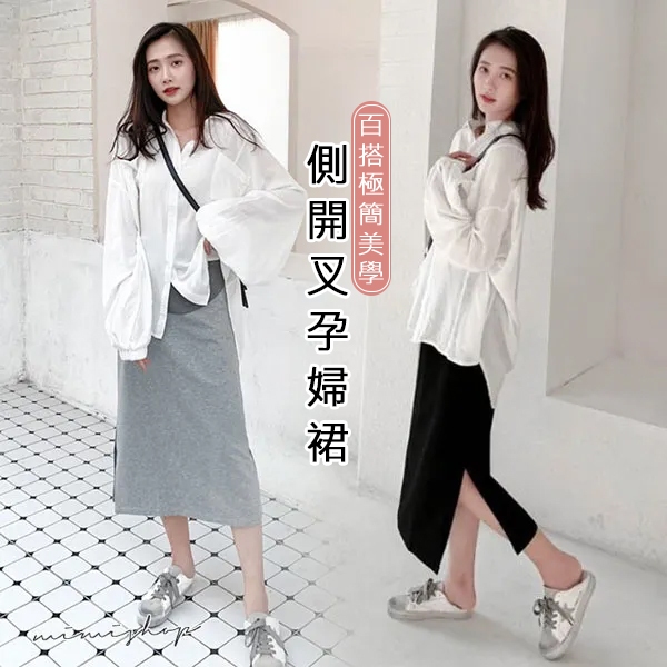 MIMI別走 孕婦裝 極簡美學 優雅側開叉棉質孕婦裙 托腹設計 【P61751】