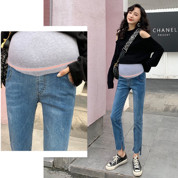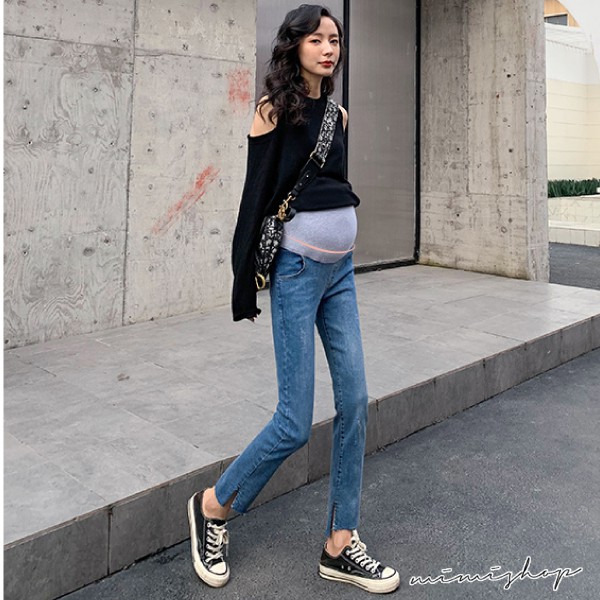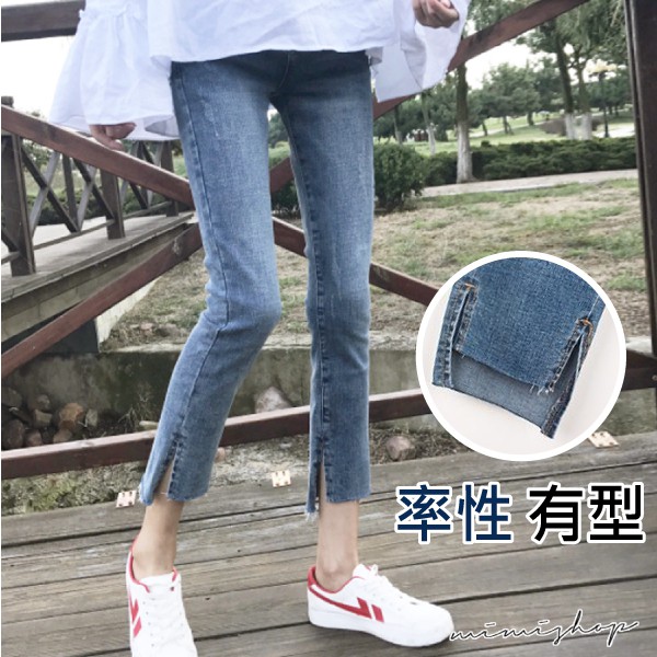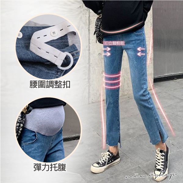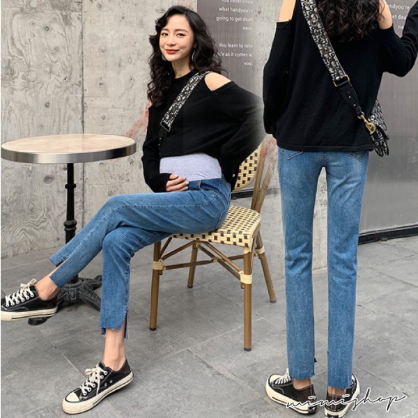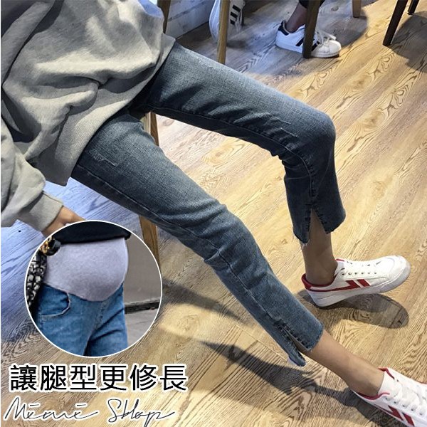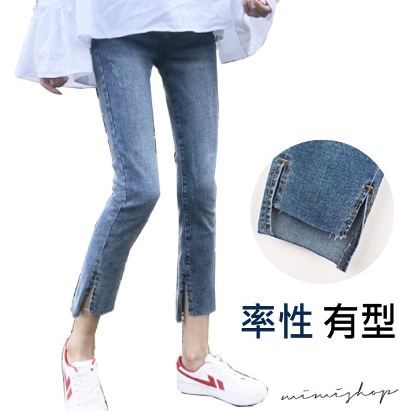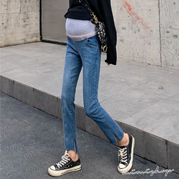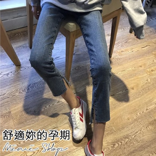 MIMI別走孕婦裝 四季穿搭 水洗刷色開叉彈力牛仔褲 孕婦褲【P61911】