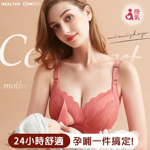 MIMI別走孕婦裝 集中輕柔 萊卡蕾絲無鋼圈 哺乳內衣 孕期哺乳期 防下垂【P72063】