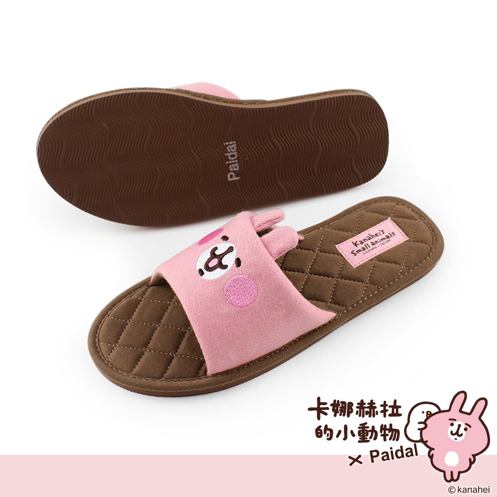 Paidal x 卡娜赫拉的小動物 萌臉系列粉紅兔兔高級室內拖鞋