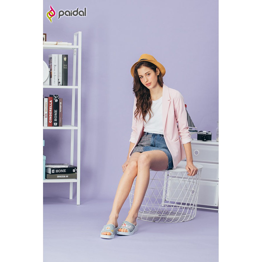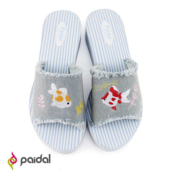 Paidal夏夜祭典撈金魚厚底一片式美型拖-牛仔藍