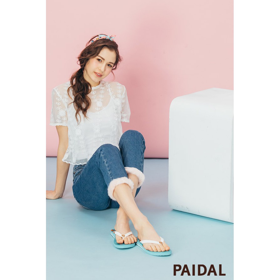 Paidal 童話森林小狐狸平底夾腳涼拖鞋-湖水藍