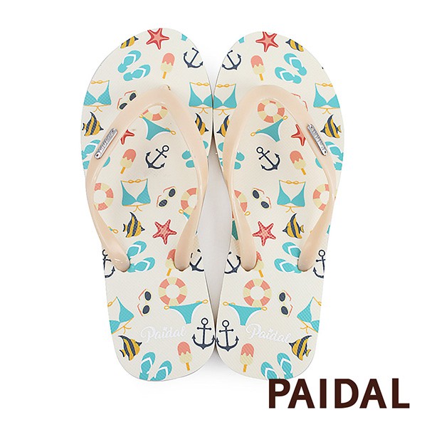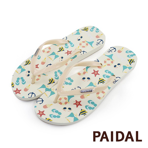 Paidal 繽紛海灘季夾腳涼拖鞋-鵝黃米