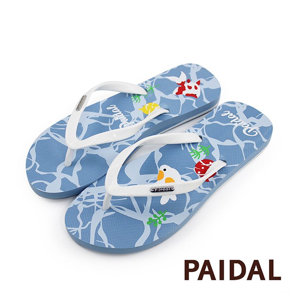 Paidal 夏夜祭典撈金魚夾腳涼拖鞋-藍