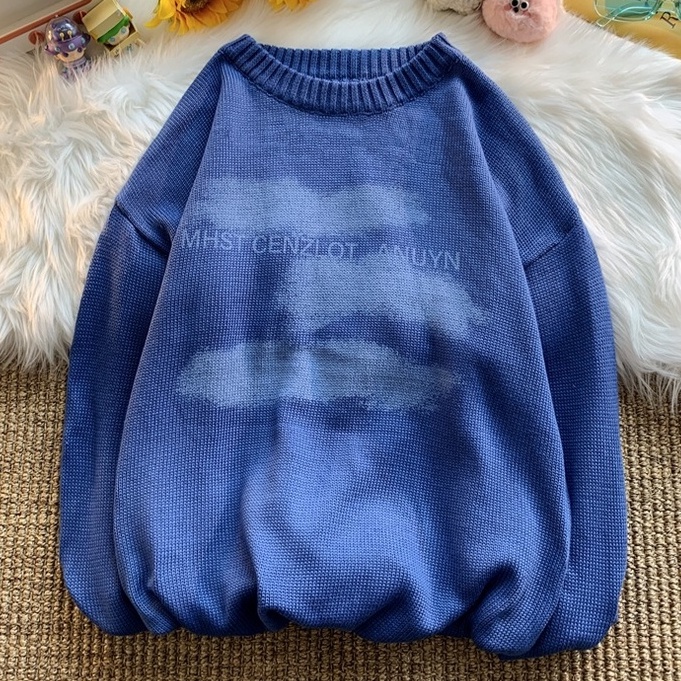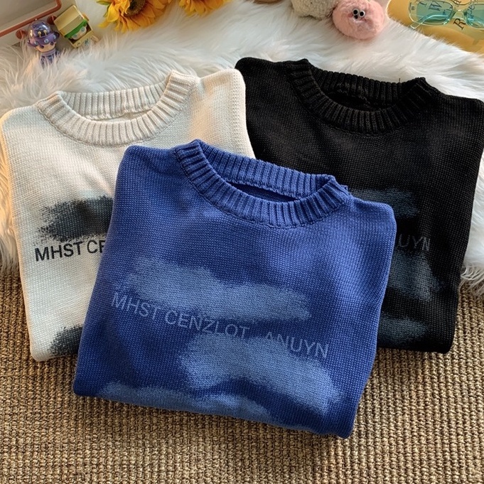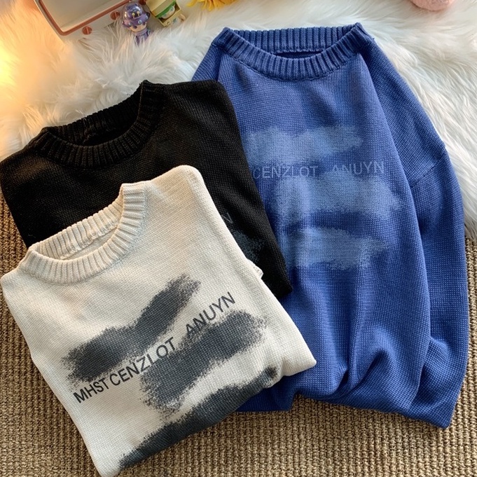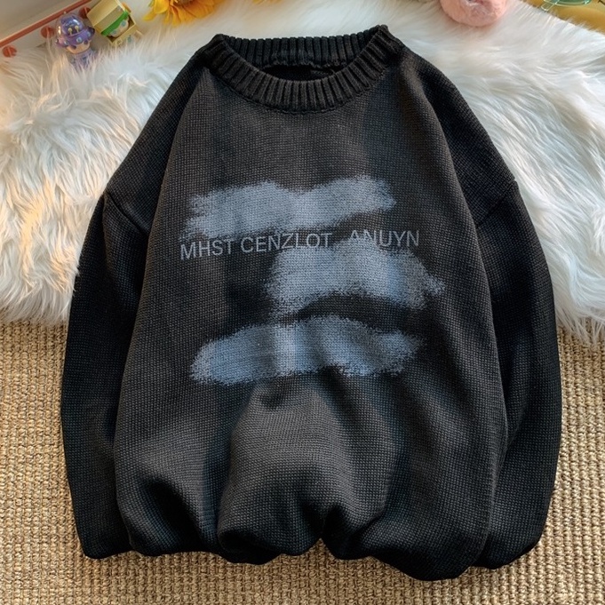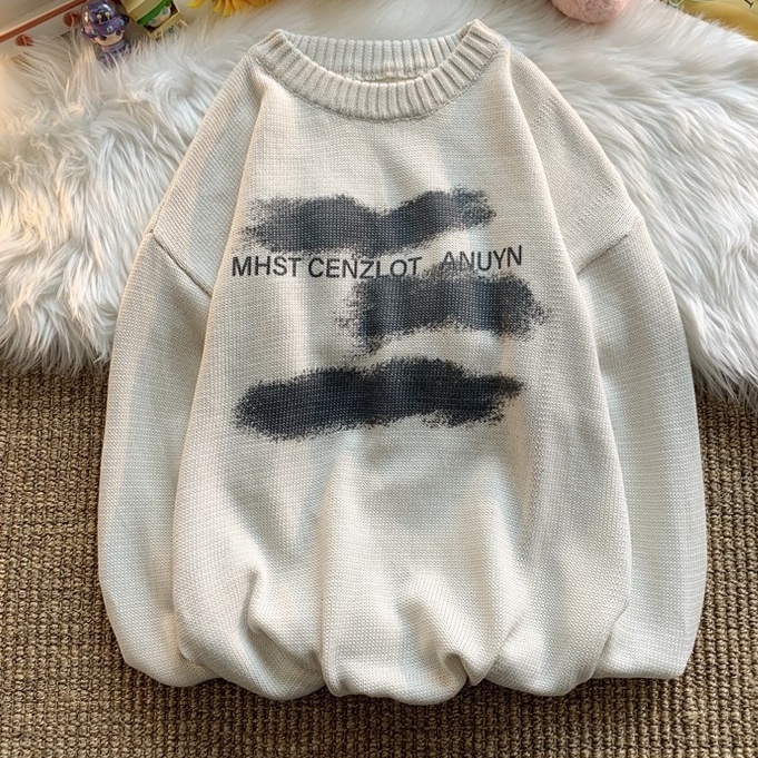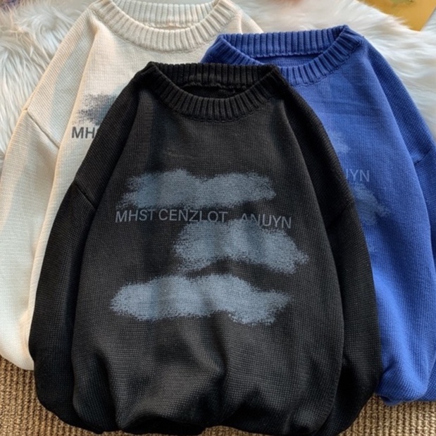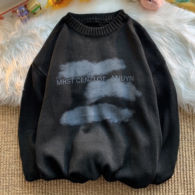 M世代】男生簡約英文針織毛衣 寬鬆男生長袖毛衣 修身毛衣 男圓領上衣 男女情侶 舒適 秋冬必備(CHXM65)