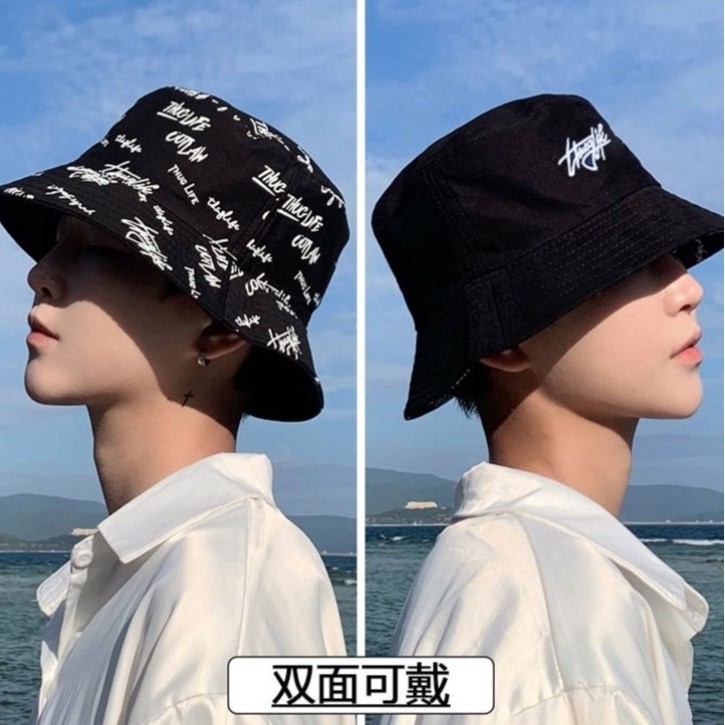 【M世代】雙面戴漁夫帽女韓版簡約休閒百搭盆帽男純色光板遮陽帽ins字母 漁夫帽 老帽 情侶帽子潮(Y22001)