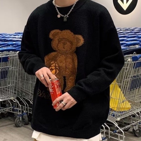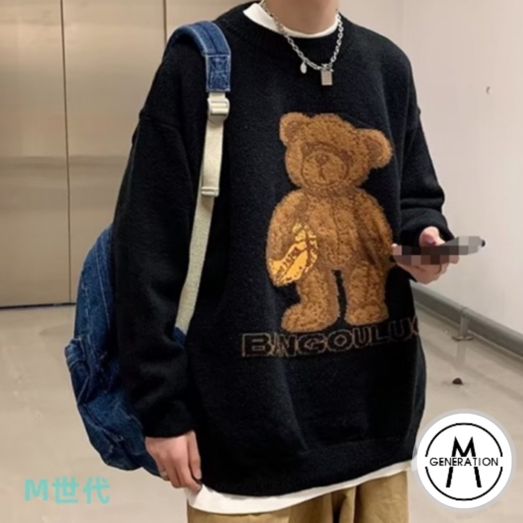 【M世代】針織衫 毛衣 圓領針織小熊毛衣男 男毛衣 男長袖毛衣 男T 保暖毛衣 修身毛衣 修身針織衫(BWJ516