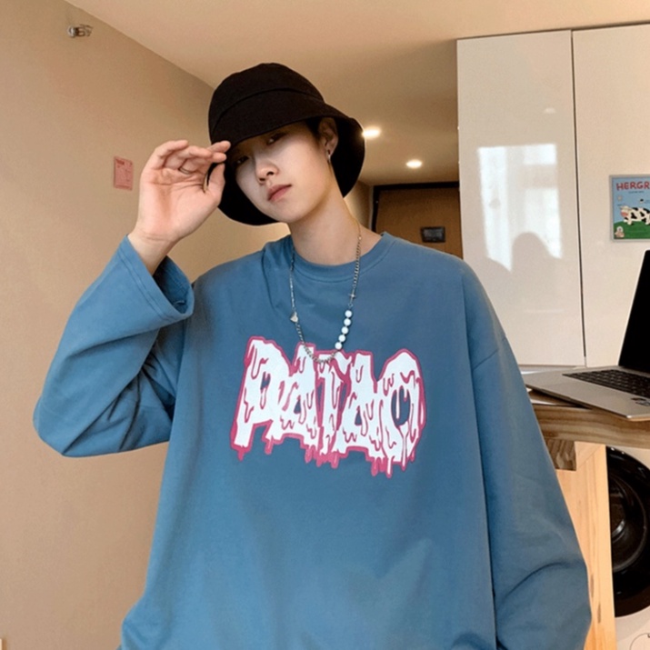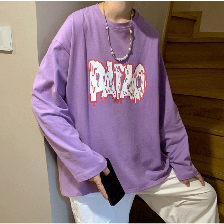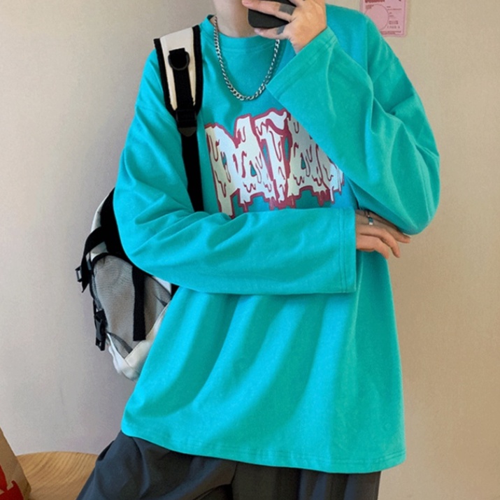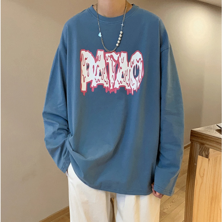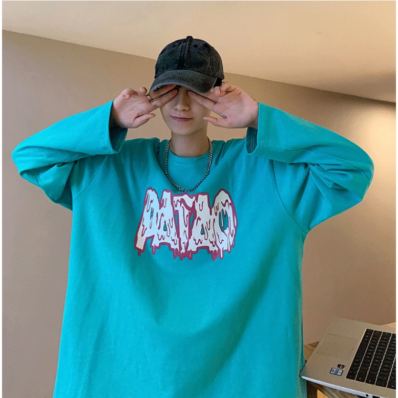 【M世代】潮流寬鬆休閒百搭印花打底衫 長袖t卹男潮ins港風純棉圓領上衣(MC353)