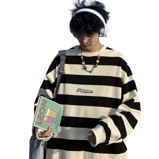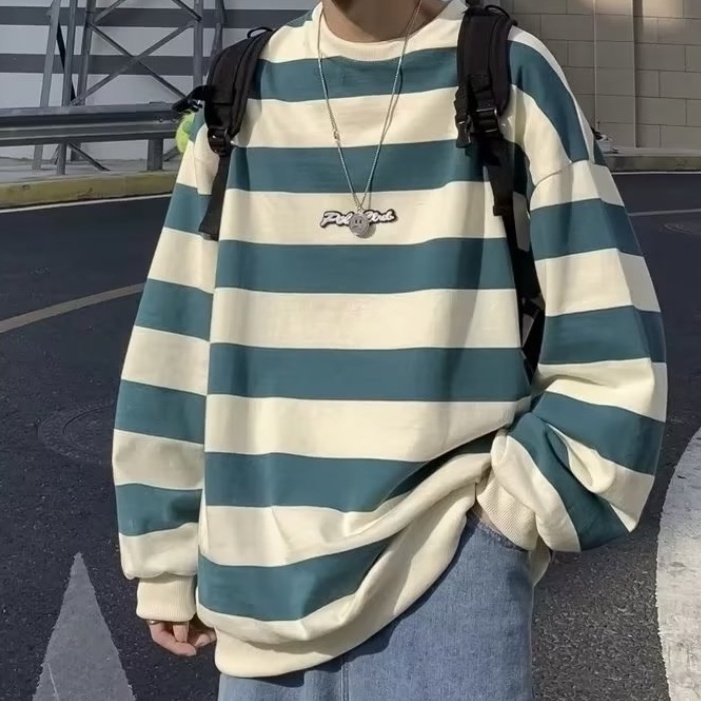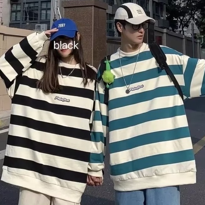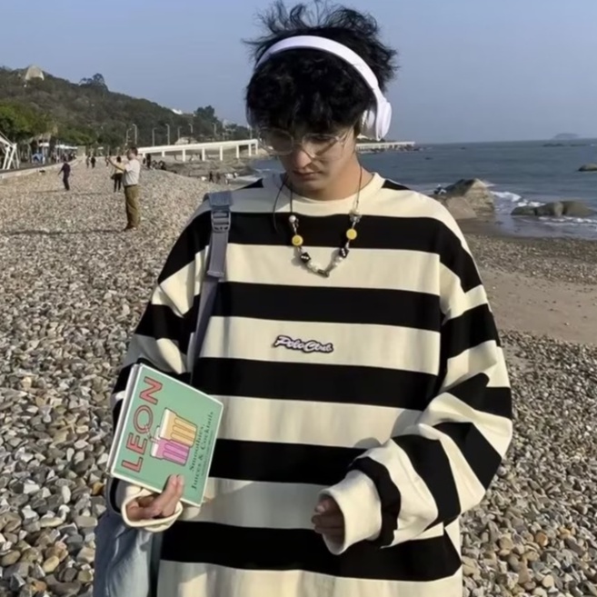 【M世代】男女情侶長袖T恤 衛衣大學T條紋 薄長T 寬鬆長T 落肩單穿 長袖素T男生長T 長袖上衣百搭 BTF32