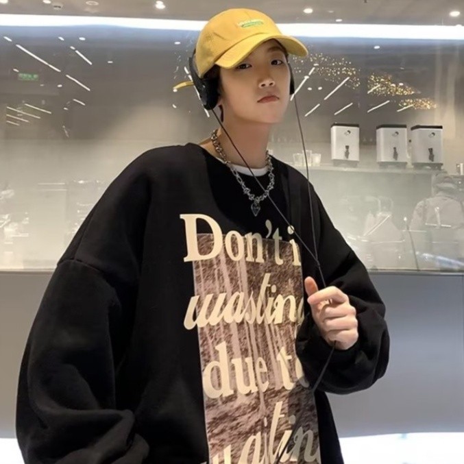 【M世代】男士長袖T恤 刷毛大學T 韓版寬鬆休閒長袖T恤男 男友風 圓領套頭男生長T 休閒長袖上衣百搭-BTBY68