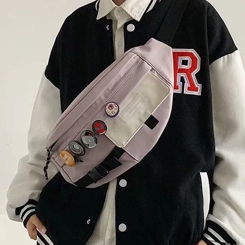【M世代】5色可選 胸包 腰包 日系ins風可愛軟妹單肩包 男女同款帆布包 斜挎包女運動腰包 (WWB20)