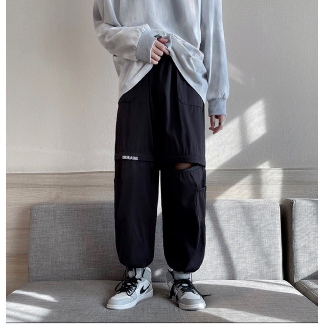 【M世代】可拆卸兩穿大尺碼工裝褲 休閒長褲 工作褲 韓版長褲 可拆卸短褲男 男束腳寬鬆潮褲 (APYA101)