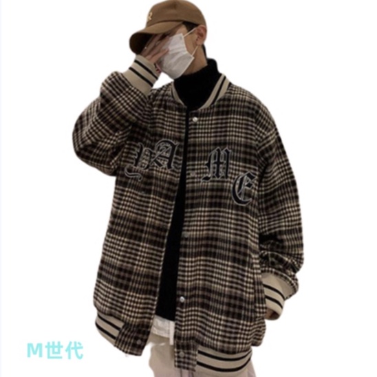 【M世代】棒球外套美式復古格子外套刺繡棒球服男夾克男女棉衣(BCLW029)