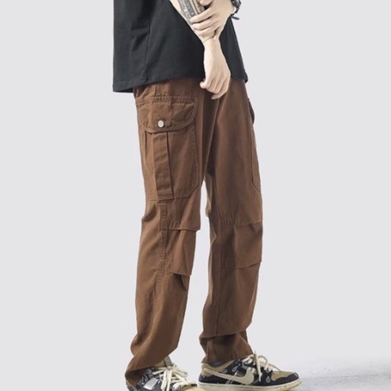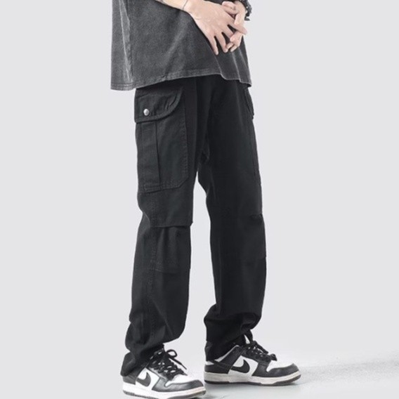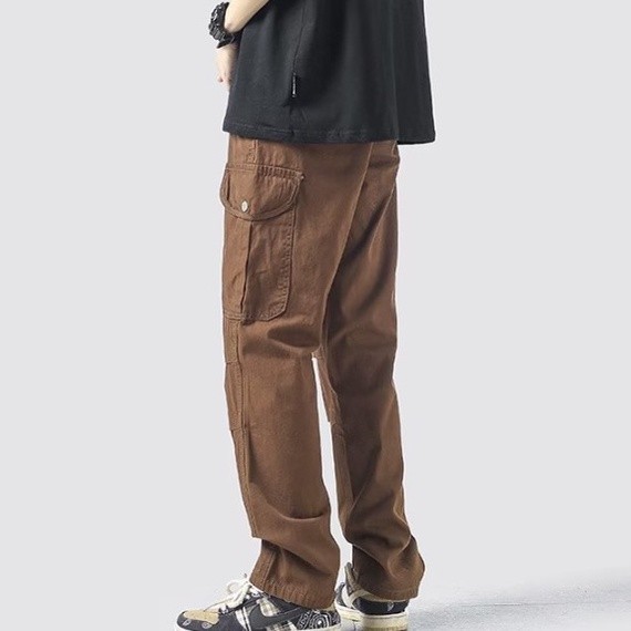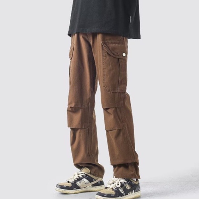 【M世代】復古直筒工裝褲男鬆緊腰多口袋休閒褲潮流男女情侶長褲男 長褲男(APCK155