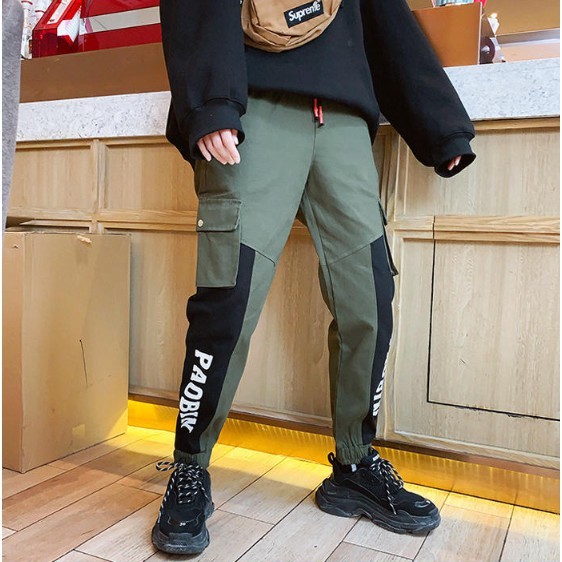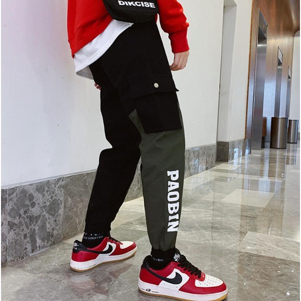 【M世代】多口袋工作褲 撞色拼接休閒縮口褲 長褲 (55732)