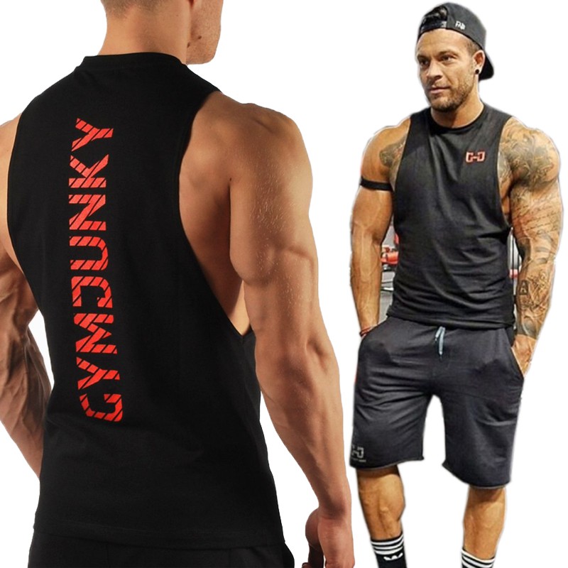 【M世代】健身坎肩 無袖 運動背心 英文印花健身背心 純棉背心 透氣 吸汗 運動背心 大開叉背心 吊嘎(50382)
