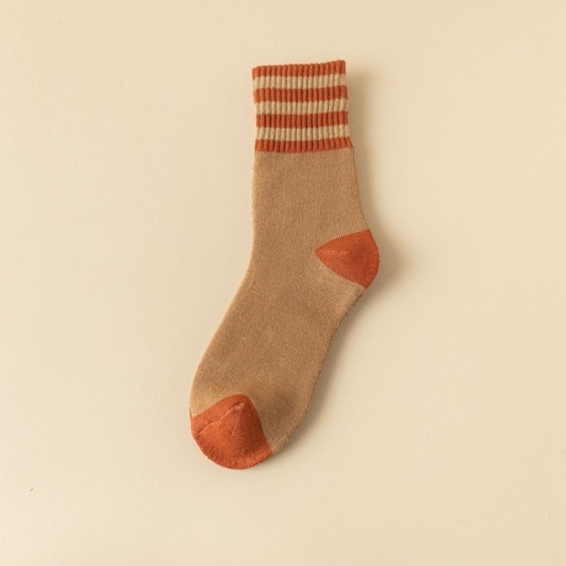 【M世代】中筒襪 加厚 長襪新品 超保暖 槓條 橫條 撞色 毛圈 襪子 女襪 (Z02060)