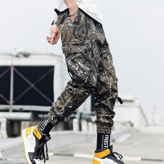 【M世代】大尺碼潮流男迷彩休閒縮口褲修身小腳褲男士休閒長褲韓版工裝褲迷彩長褲 束腳褲 工作褲 (YM603)