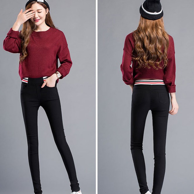【M世代】多件優惠 實拍 大尺碼 韓系 顯瘦 高腰 彈力休閒褲 窄管褲 鬆緊腰打底褲 內搭長褲 休閒長褲(F0349)