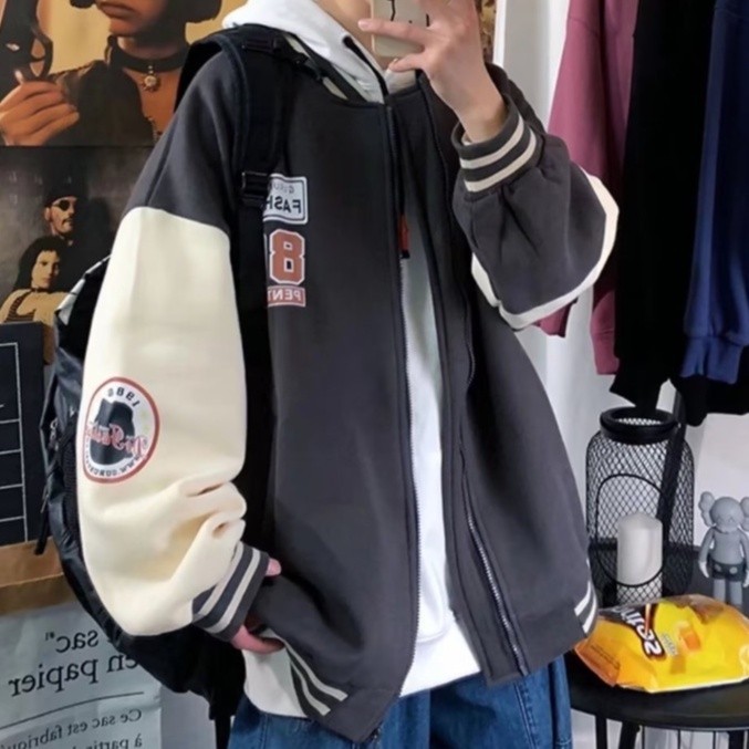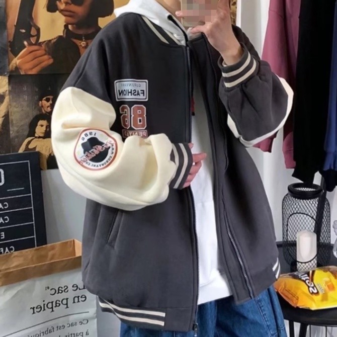 【M世代】開衫連帽外套 棒球服外套 情侶外套 帽t 外套 男秋冬刷毛外套連帽夾克寬鬆百搭休閒開衫衛衣(BCS86