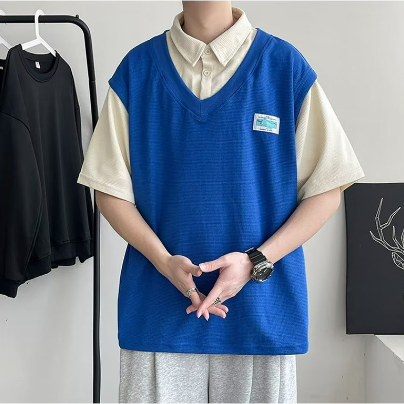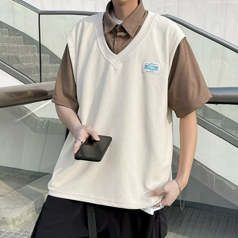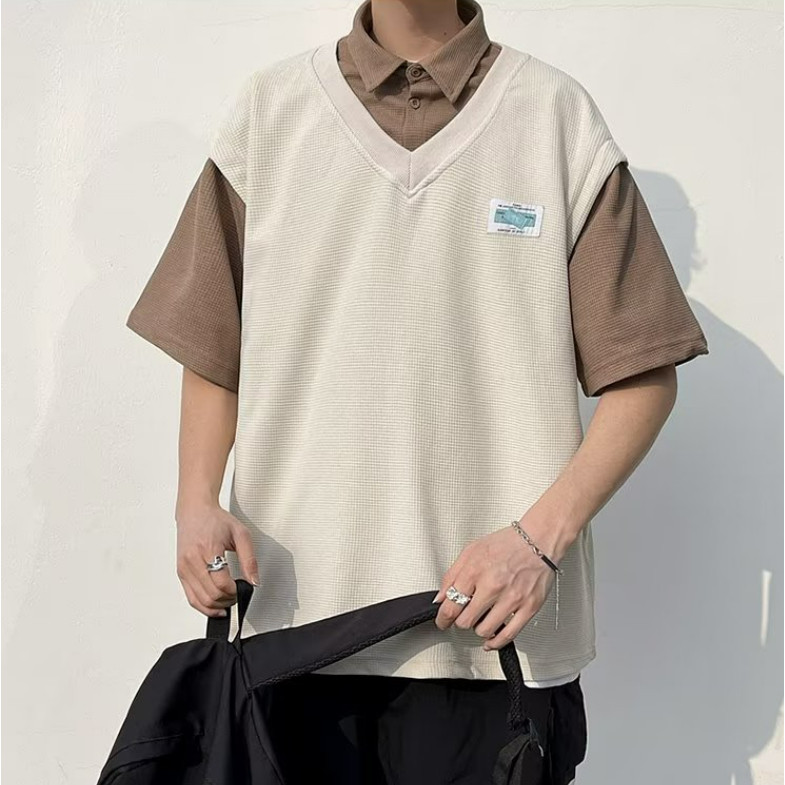 【M世代】多層次穿搭落肩T假兩件領口短T 寬版 短袖落肩 素T 假兩件 T恤 背心(ATSF231)