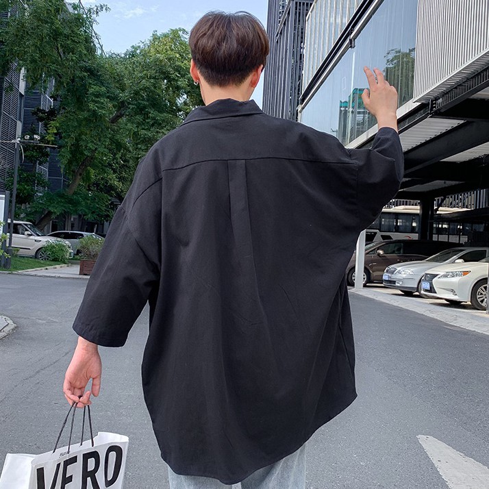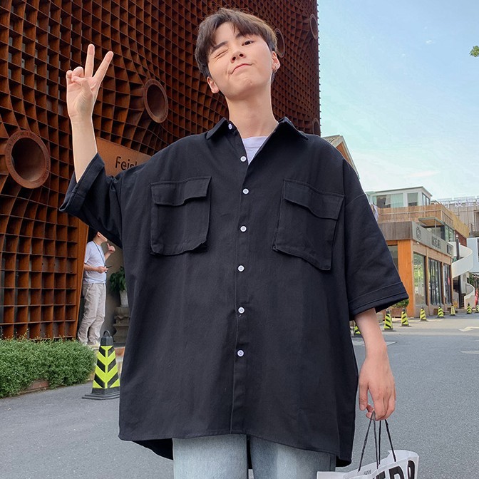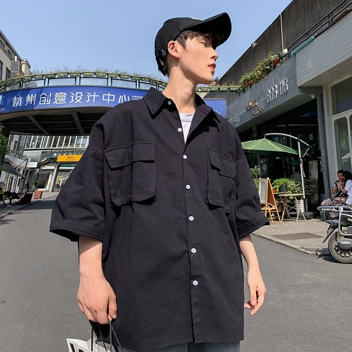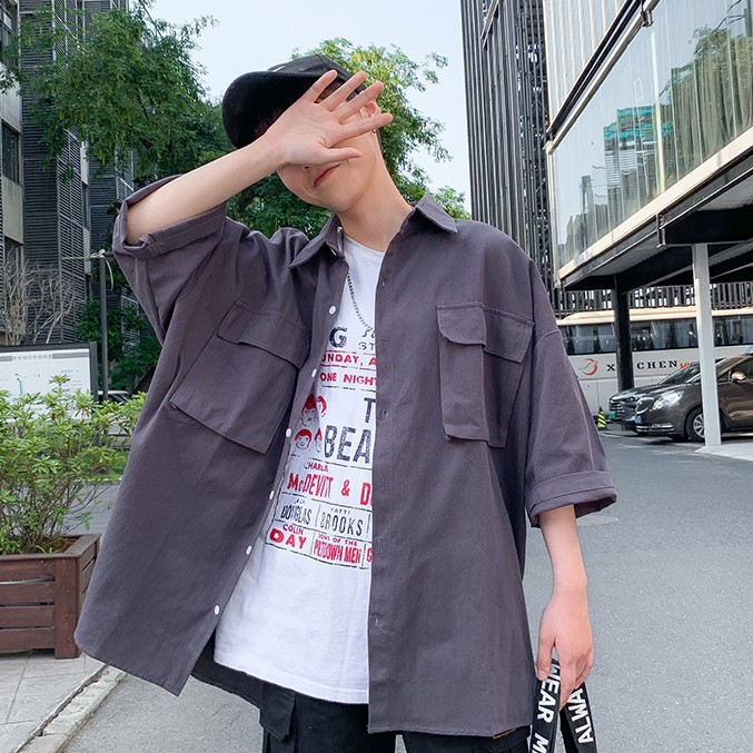 【M世代】夏季文藝復古風純色翻領短袖襯衫 百搭休閒韓版寬鬆襯衣 大尺碼學院風工作襯衫上衣 男生衣著(EL8513)