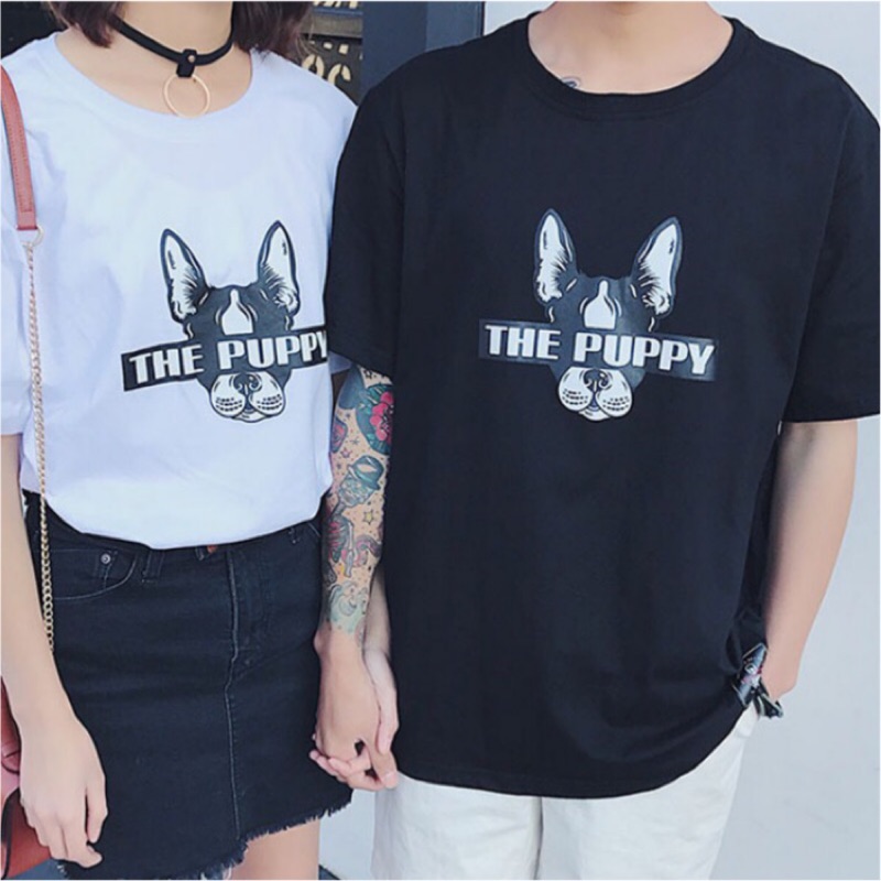 【M世代】情侶裝 情侶T 潮T純棉短T 台灣出貨 寬鬆 落肩 男女 班服 小狗 (8123)