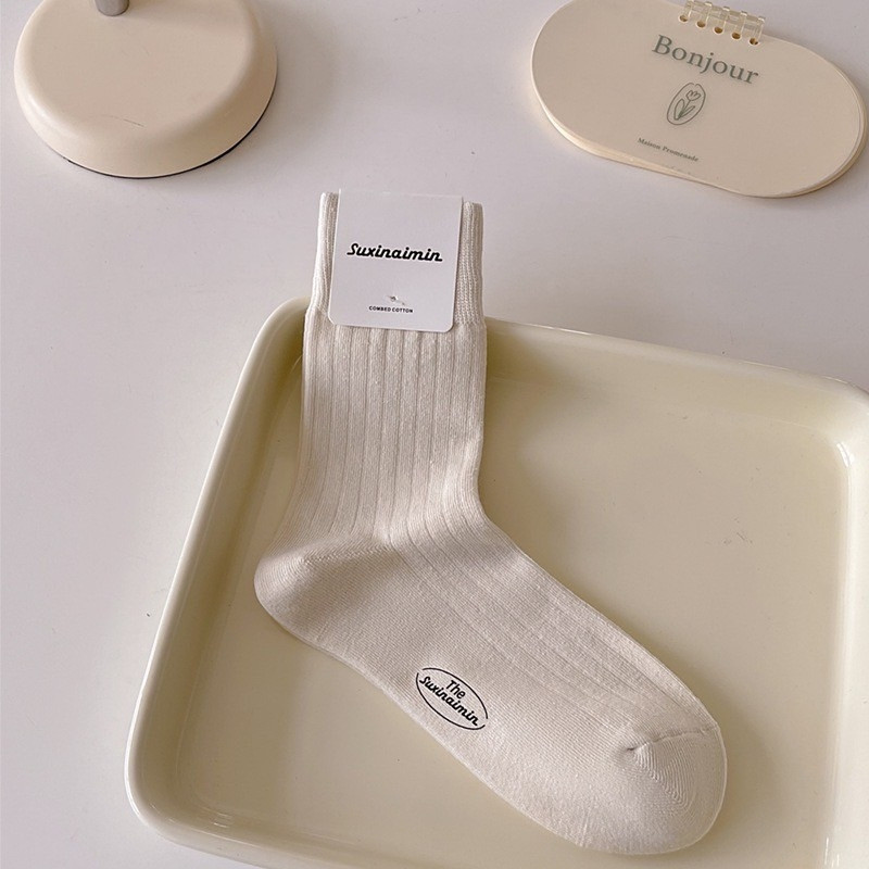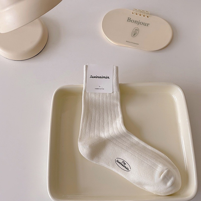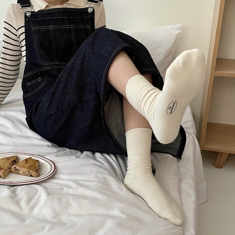 【M世代】 秋冬 質感堆堆襪 韓版INS 日系 女襪 棉襪 襪子 奶油百搭 學院風燙印 (ZA011)