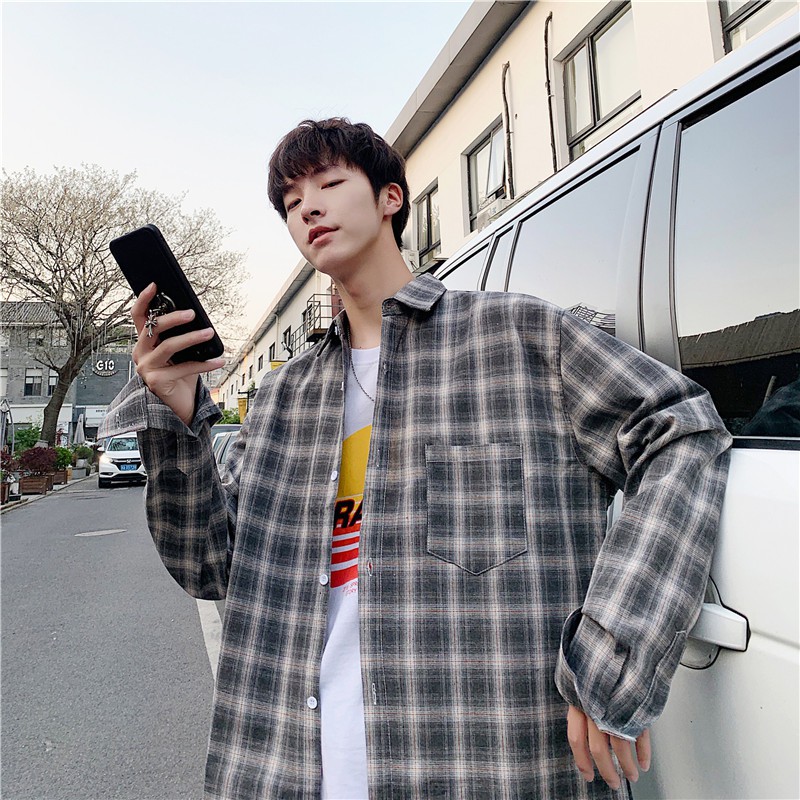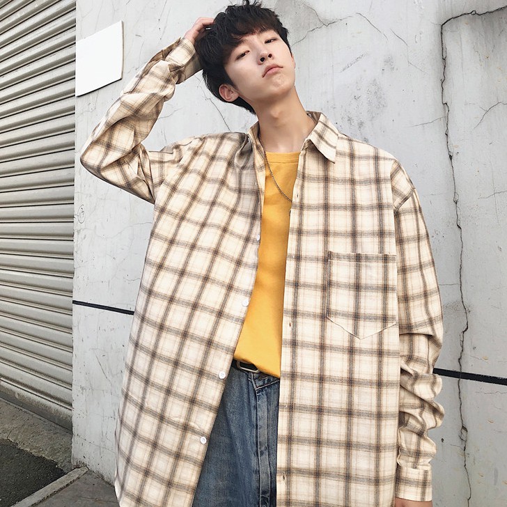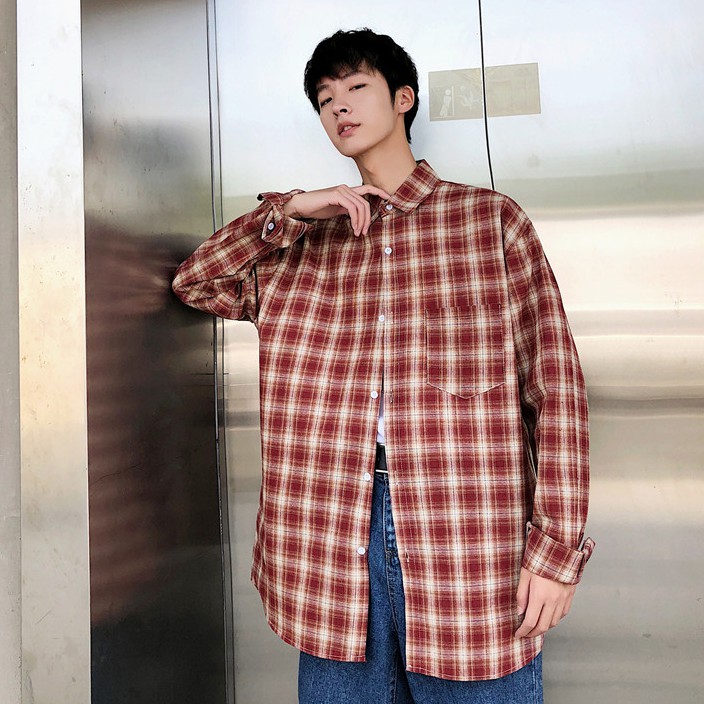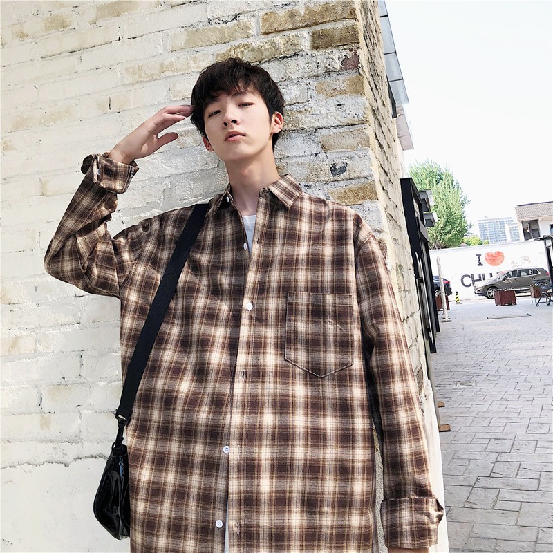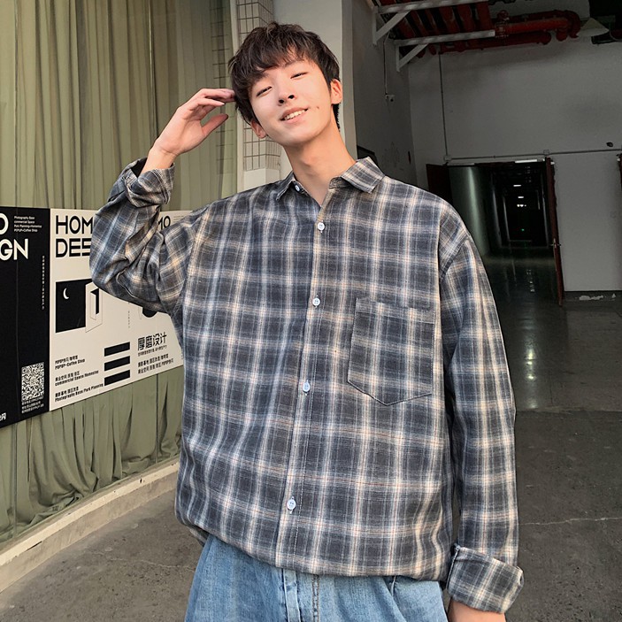 【M世代】格紋長袖襯衫男女 情侶 韓版大尺碼寬鬆翻領襯衫 休閒學院風襯衣長袖衣服 正韓上衣 男生衣著(JD1829)