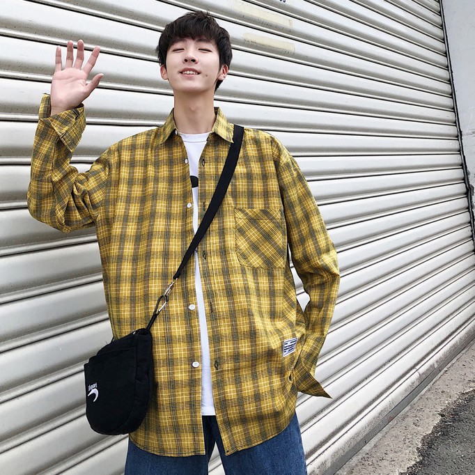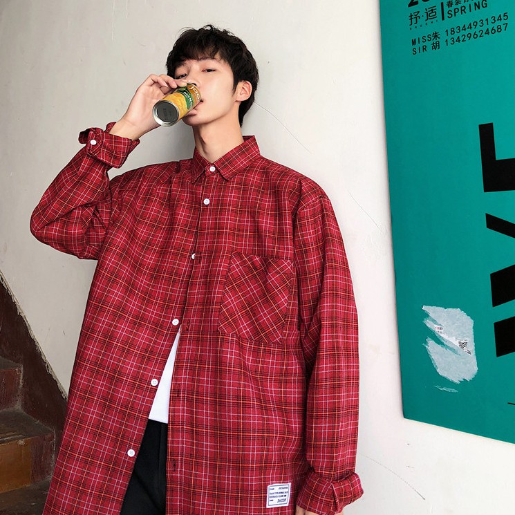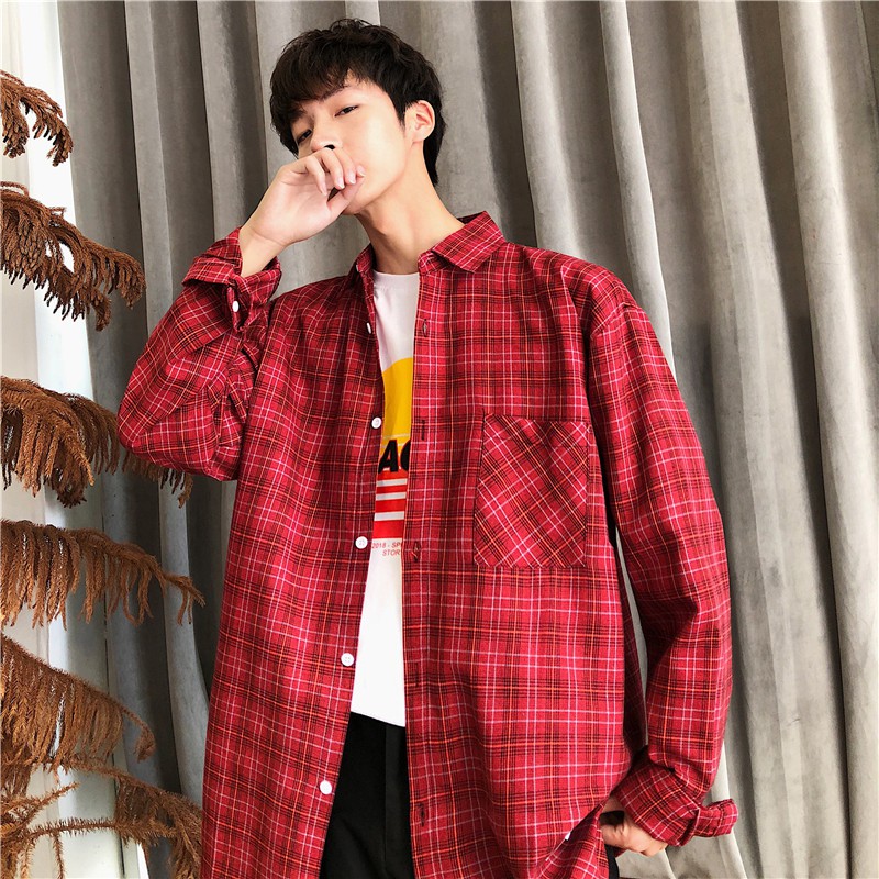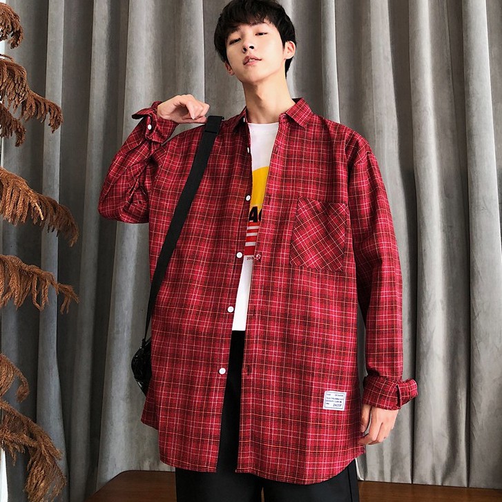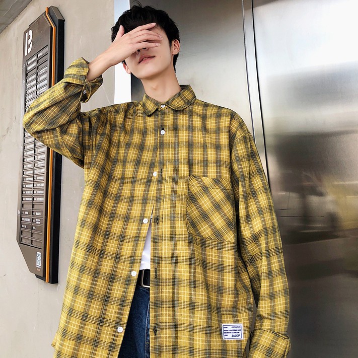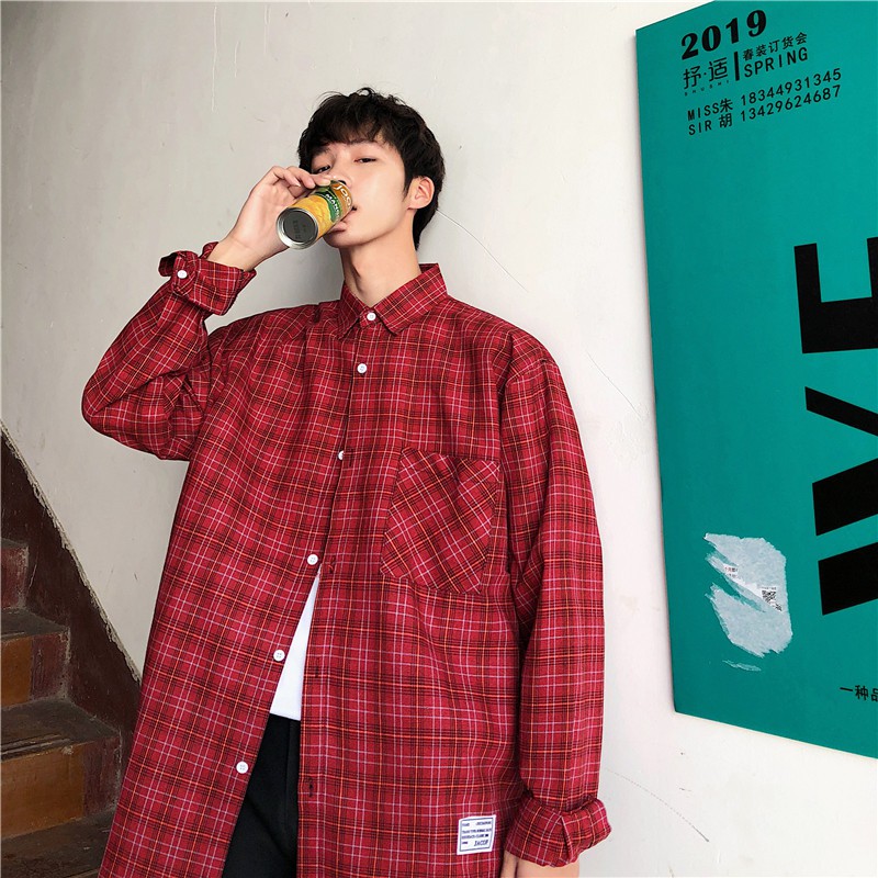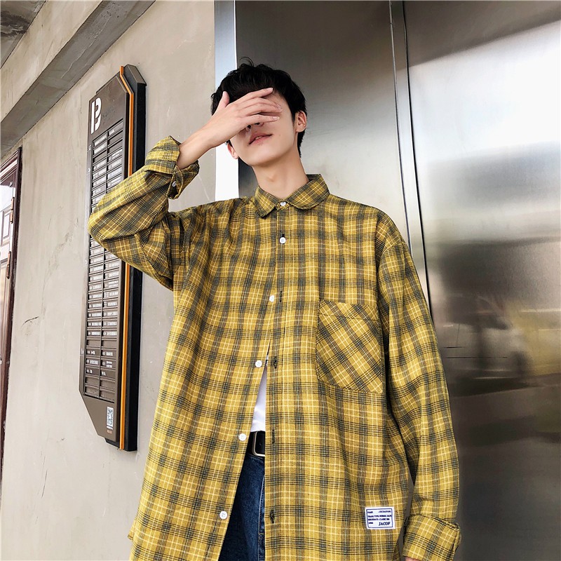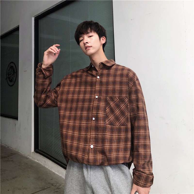 【M世代】格紋長袖襯衫 韓版大尺碼寬鬆翻領襯衫 休閒學院風襯衣長袖衣服 正韓上衣 男生衣著(JD1834)