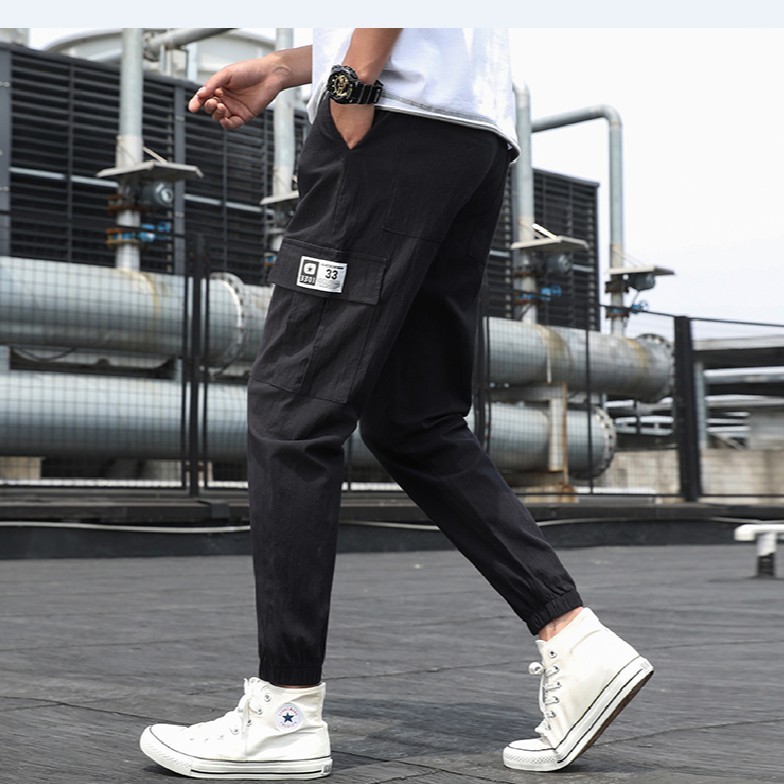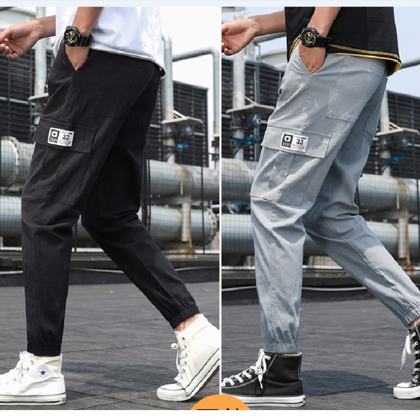 【M世代】工裝褲 日系寬鬆側邊大口袋工作褲休閒長褲縮口褲 韓版潮流百搭 縮口束腳休閒褲 運動哈倫褲 (YFLMG101)
