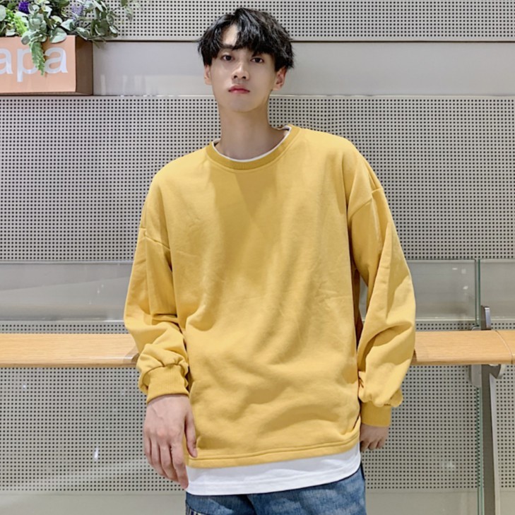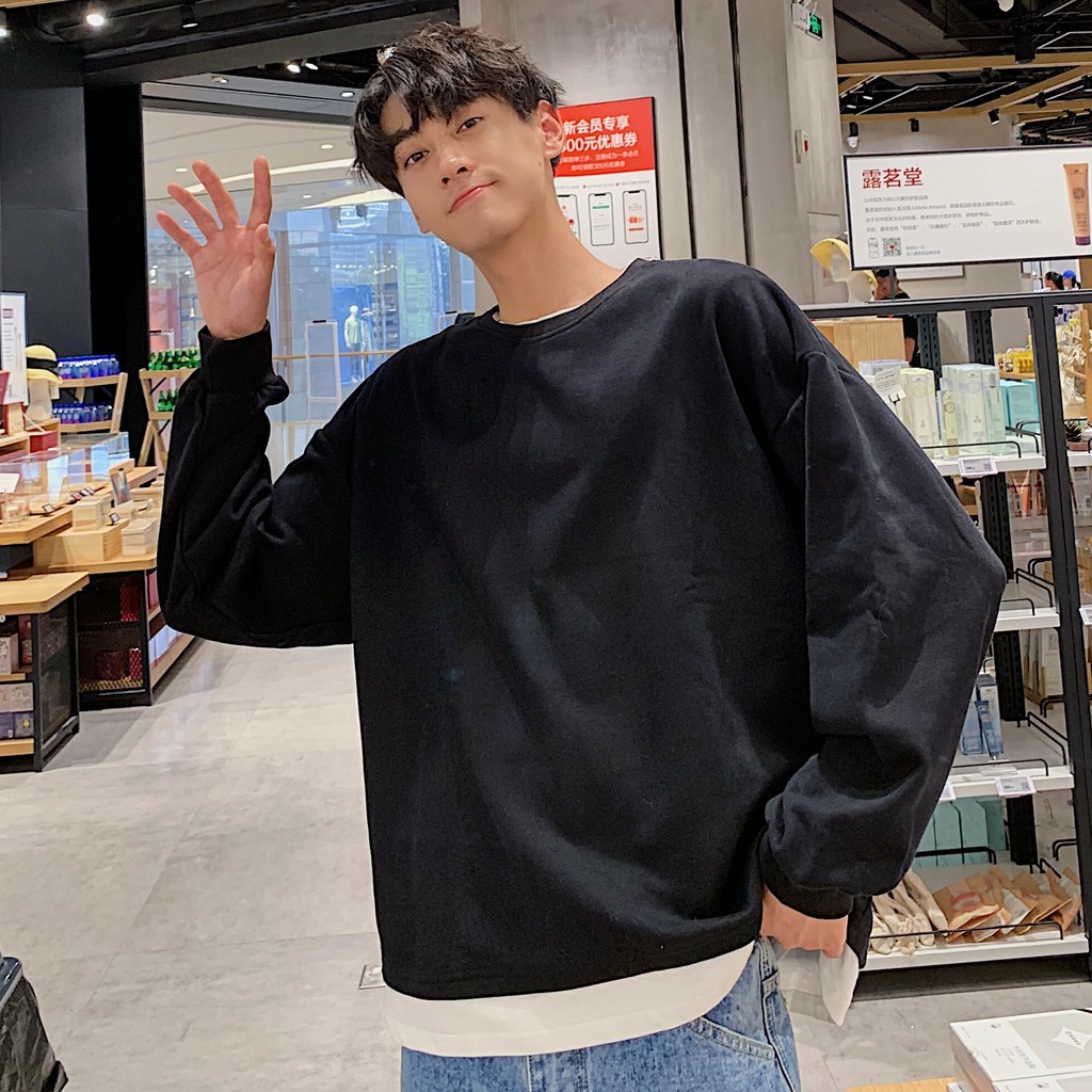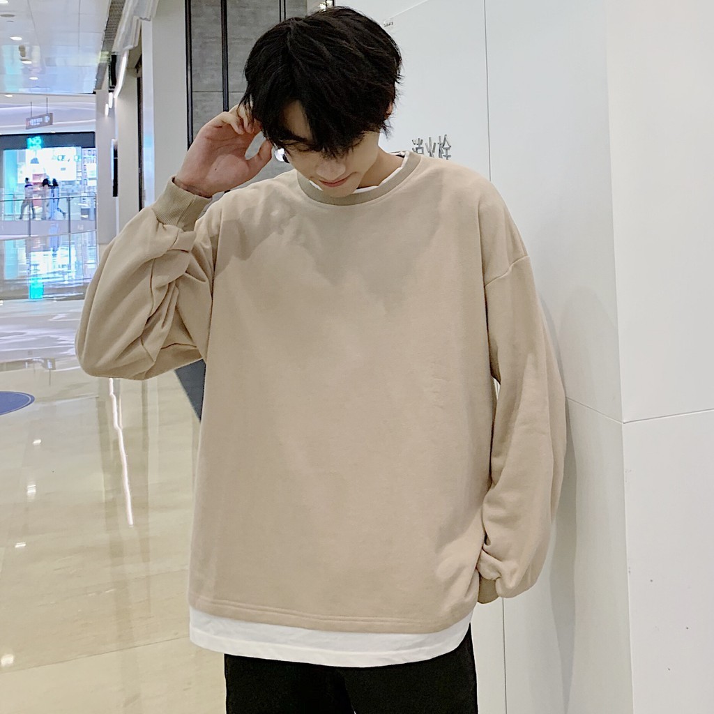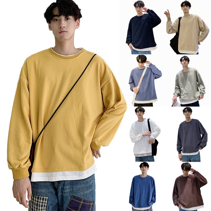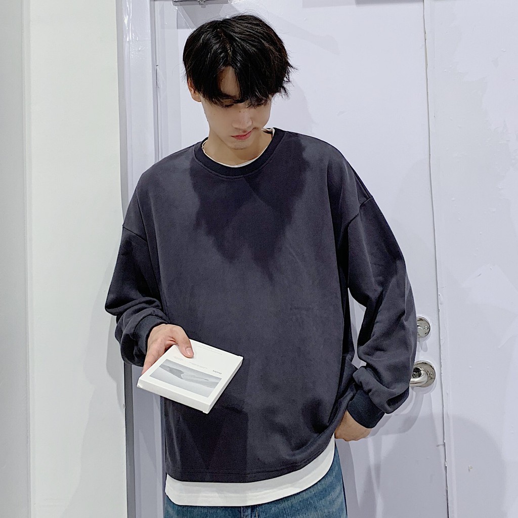 【M世代】 厚磅刷毛假兩件大學T 層次穿搭落肩T 情侶款 素面 素面大學T (CBT14)