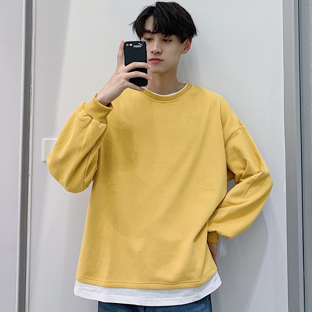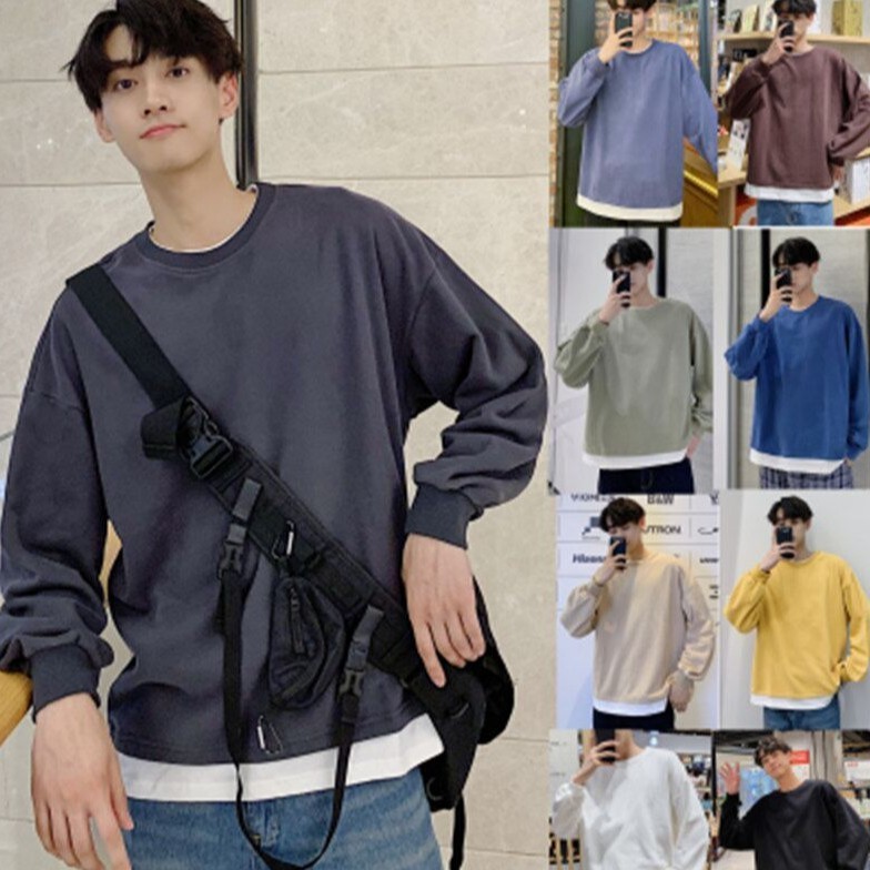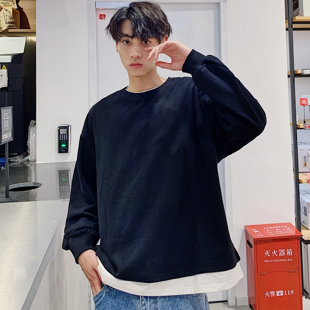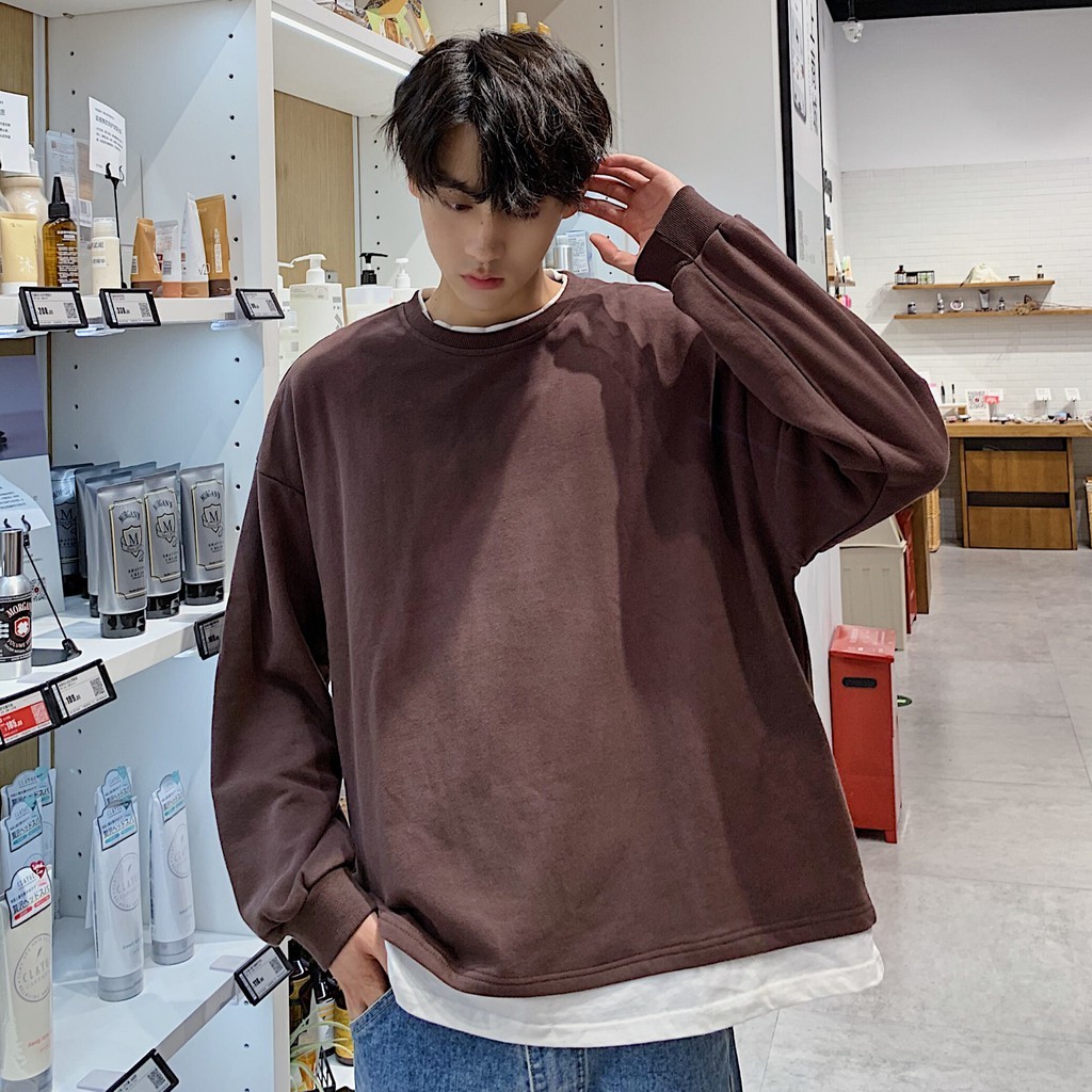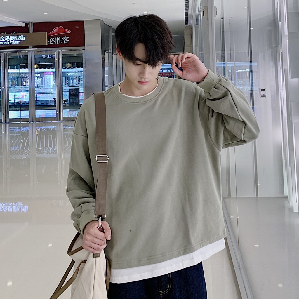 【M世代】 厚磅刷毛假兩件大學T 層次穿搭落肩T 情侶款 素面 素面大學T (CBT14)