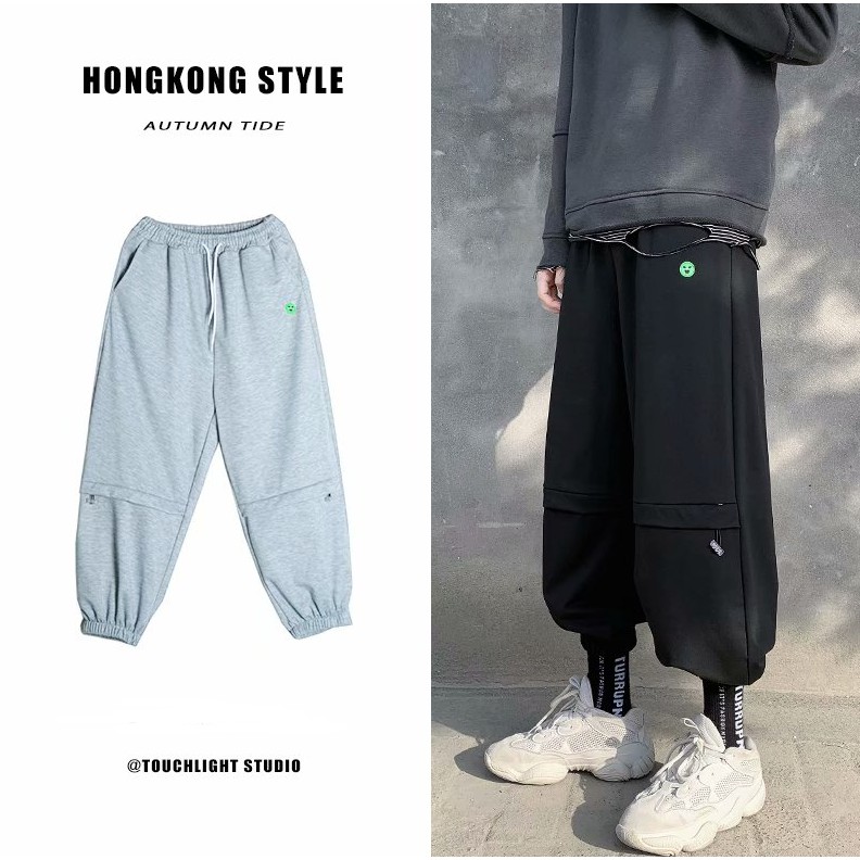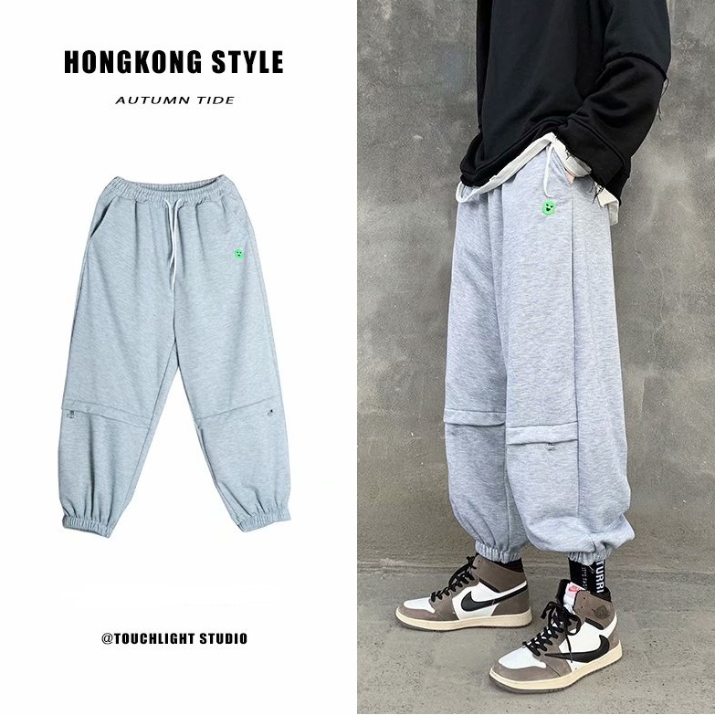 【M世代】 灰色運動褲男女情侶寬鬆束腳ins潮秋季薄款褲子新款哈倫長褲休閒衛褲 棉褲(MMX12