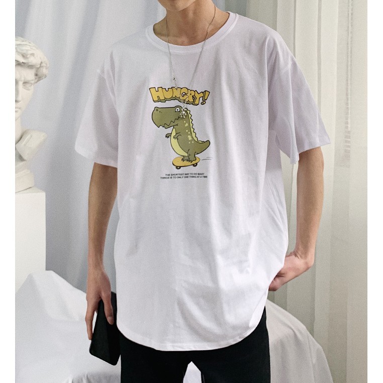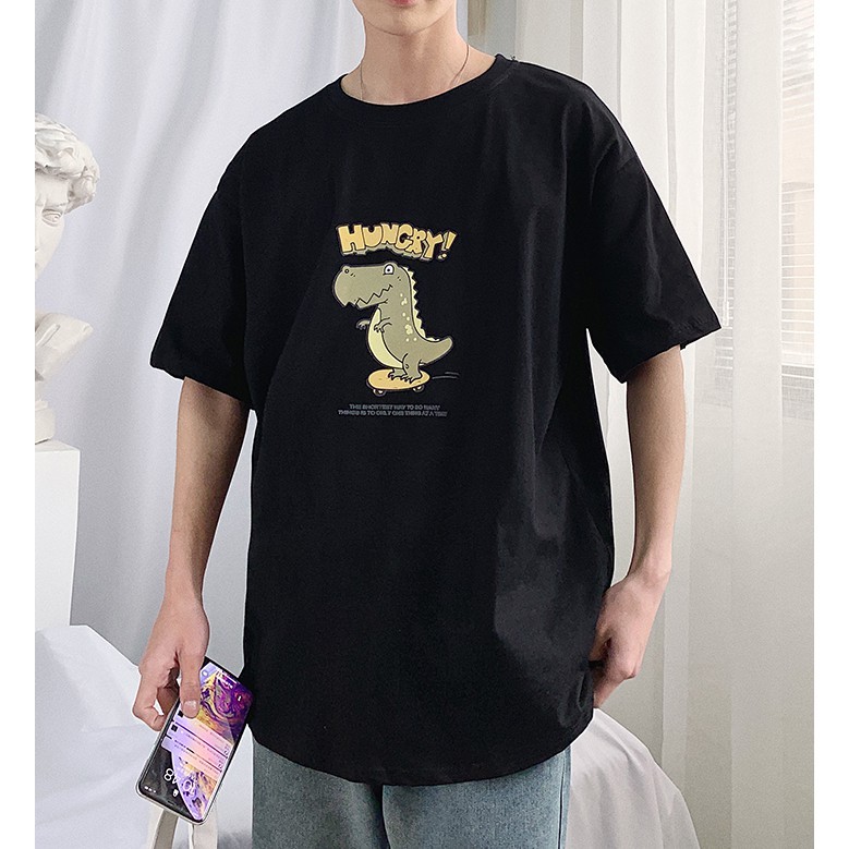 【M世代】潮流純色落肩T恤 可愛鱷魚印花五分袖T恤 寬鬆青少年ins五分袖素T 百搭衣服 情侣裝 短袖T恤(T940)