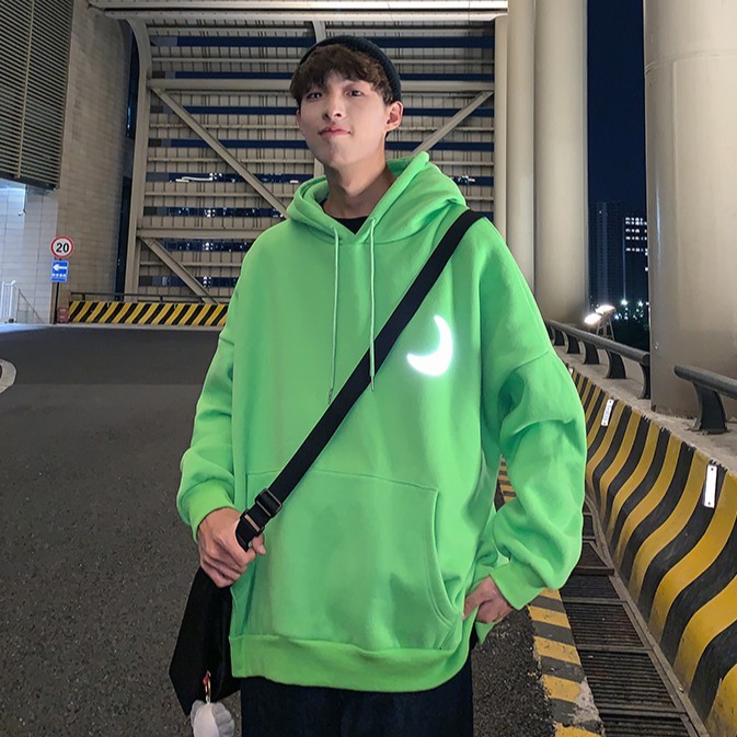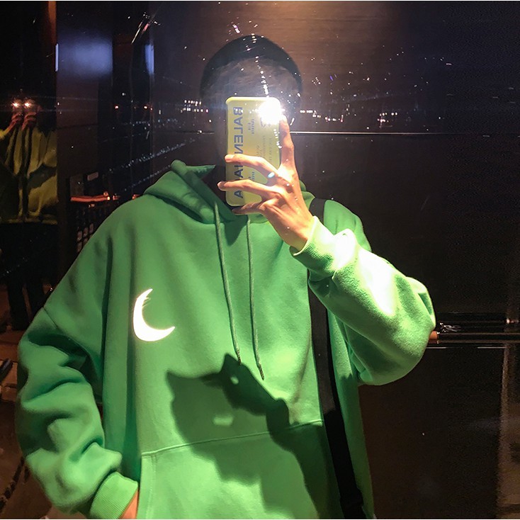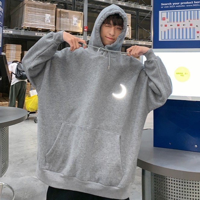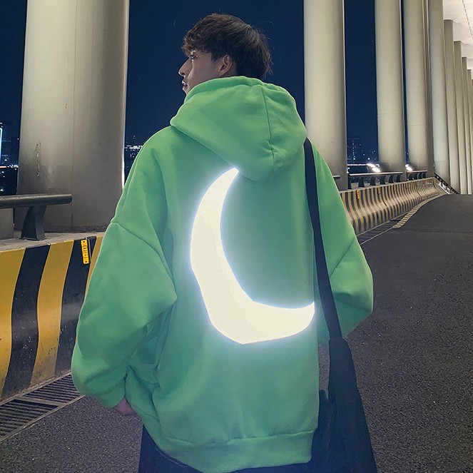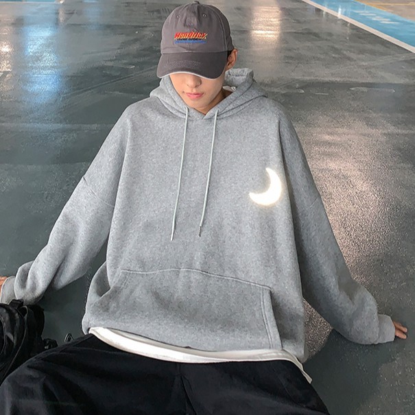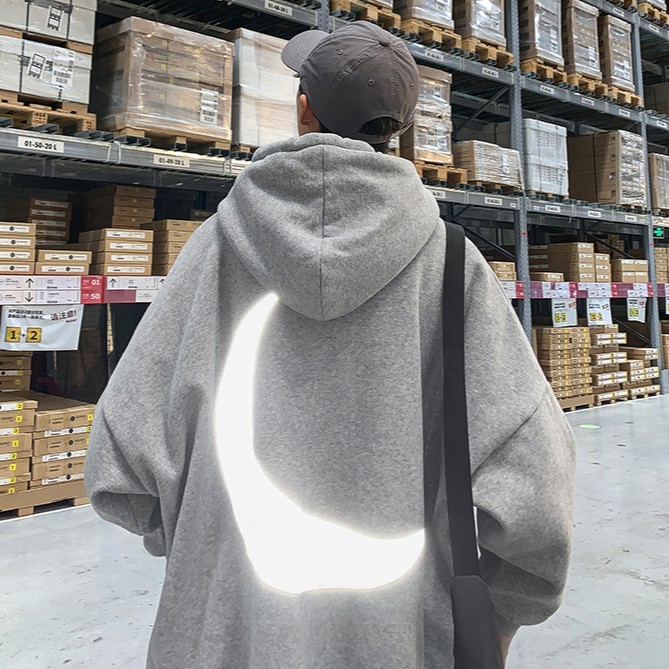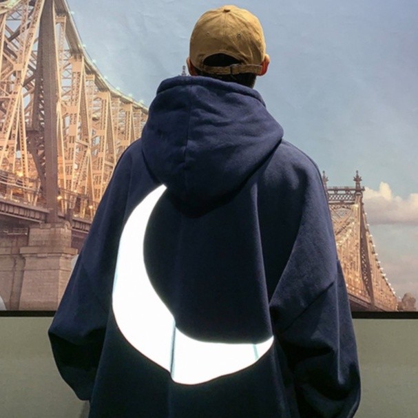 潮流街頭 反光月亮情侶裝連帽衛衣男女刷毛ins韓版潮流秋冬款上衣外套厚帽T(MY949)