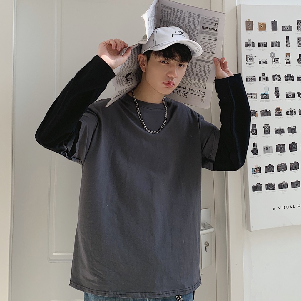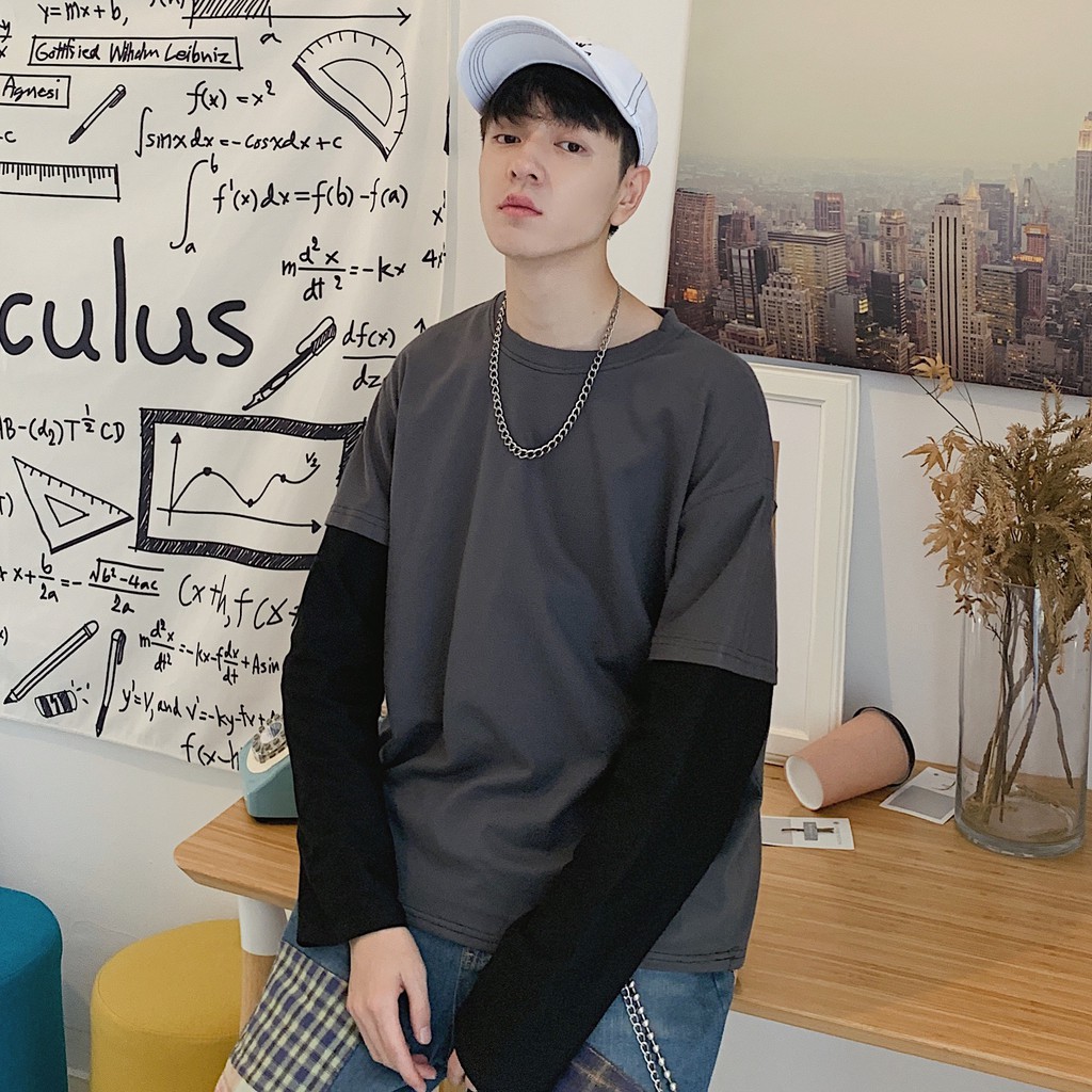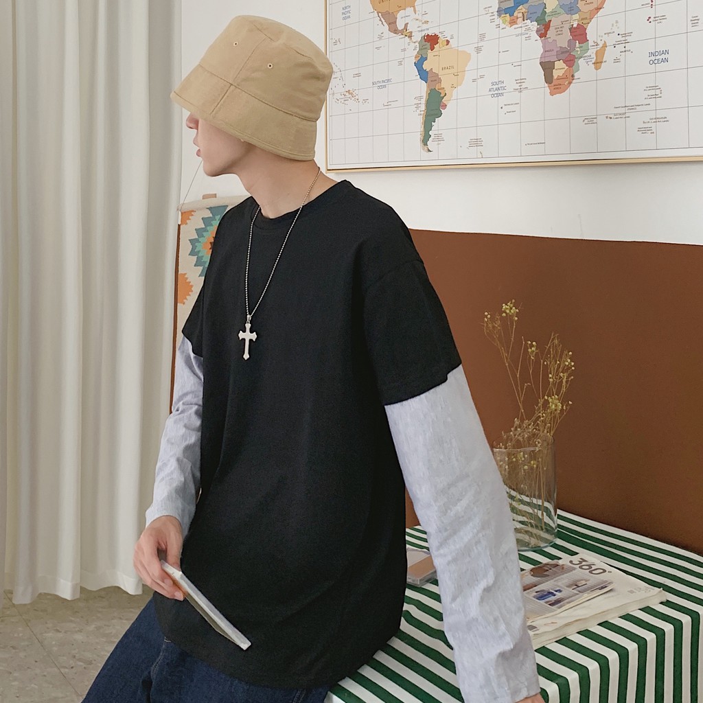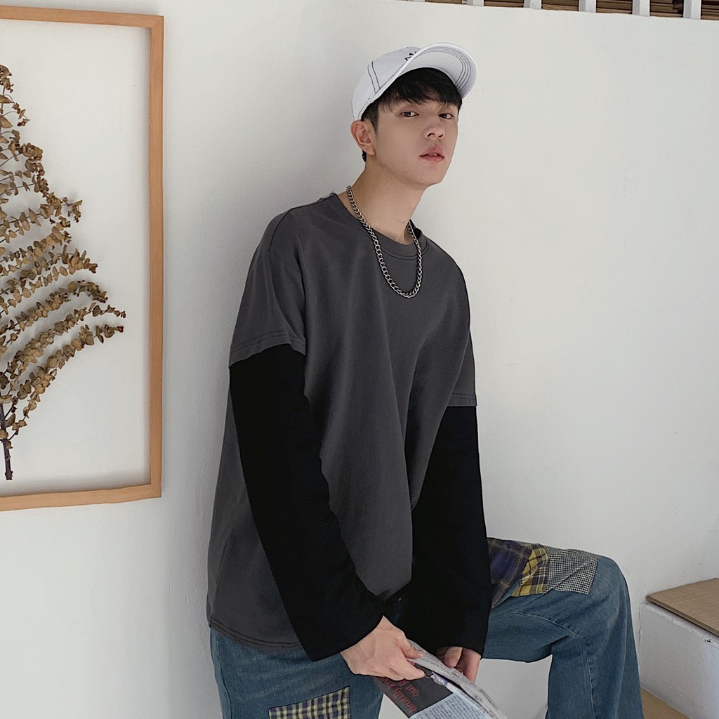 【M世代】多層次穿搭落肩T假兩件落肩長袖上衣短T 寬版 拼接 穿搭必備 落肩 素T 假兩件 T恤 (CEHA55)