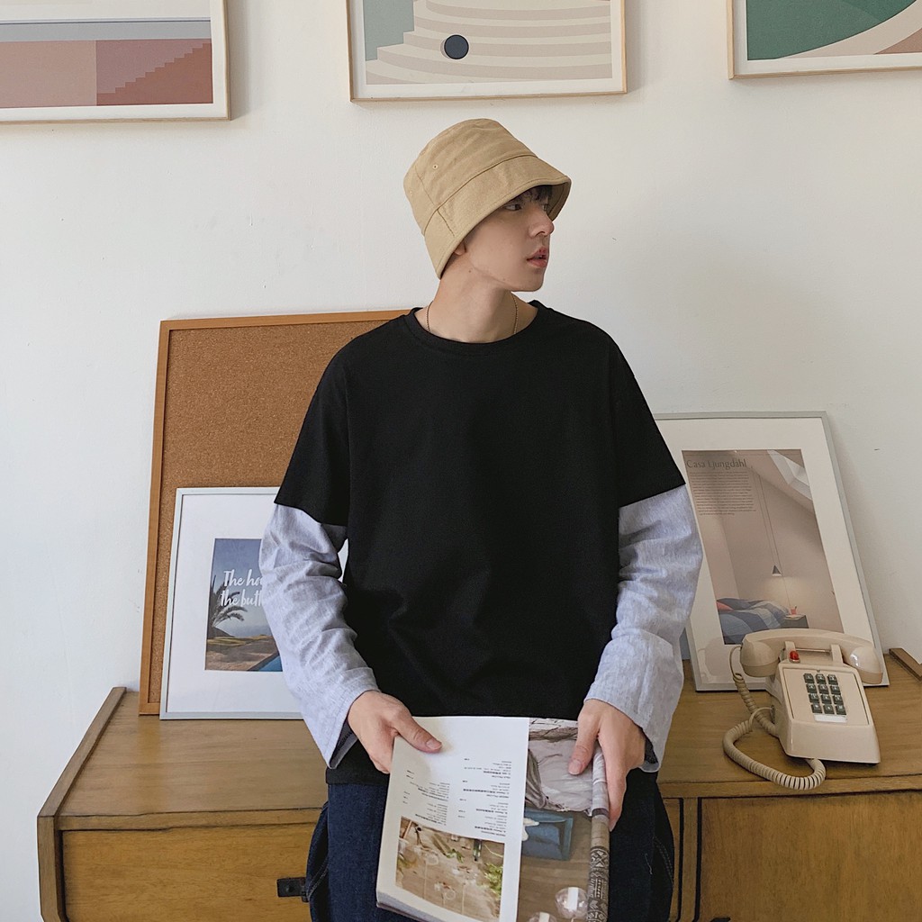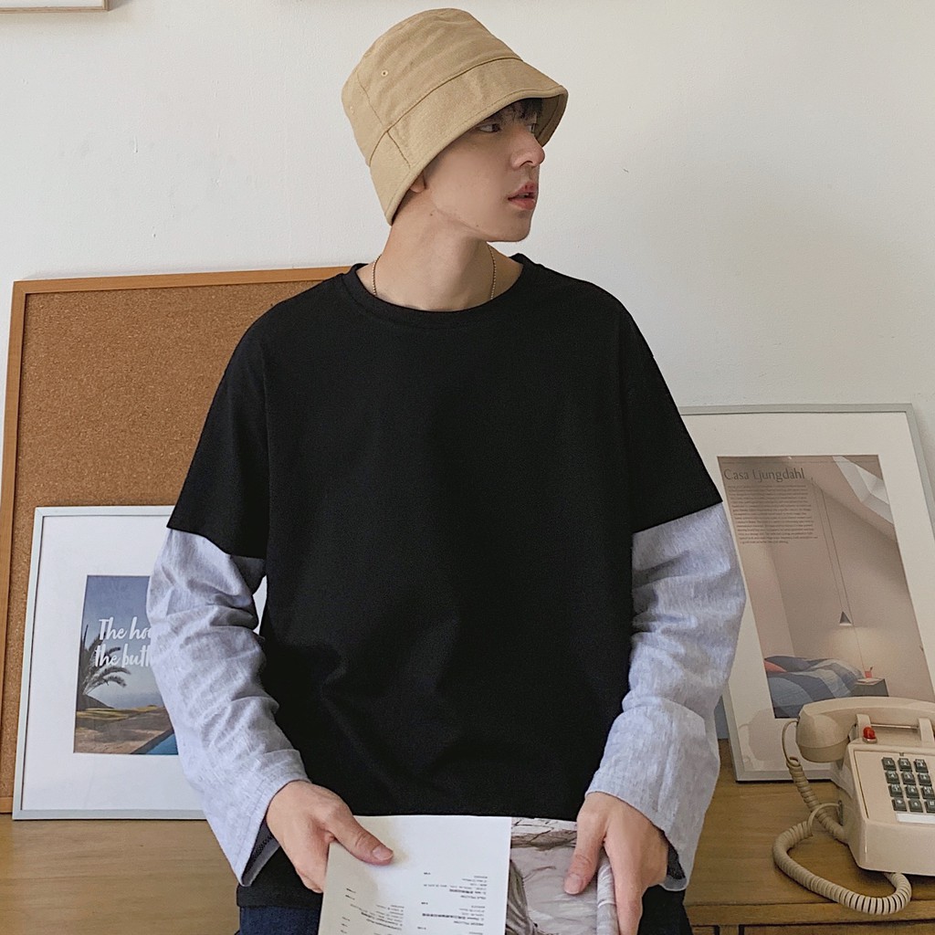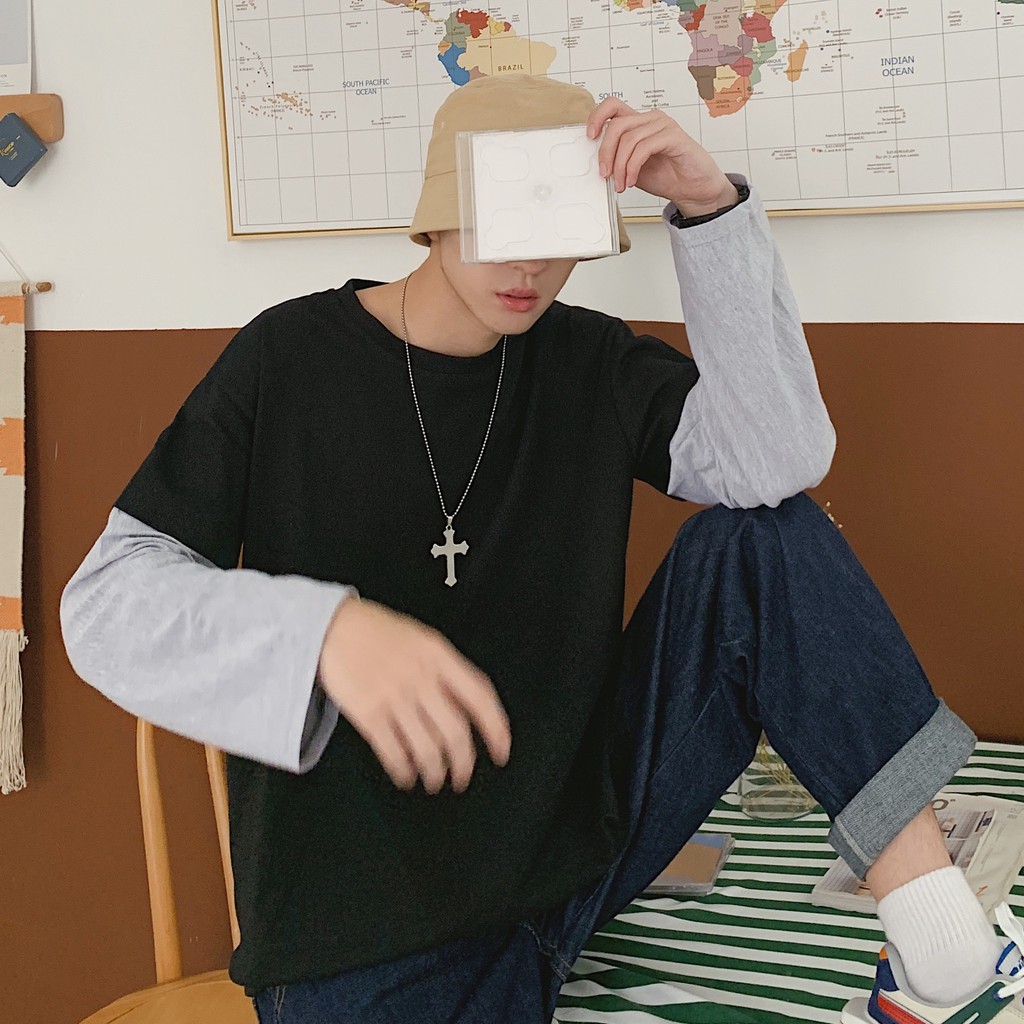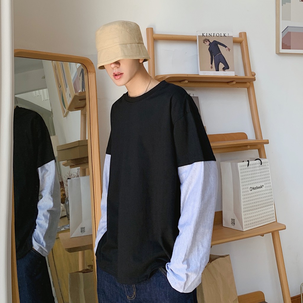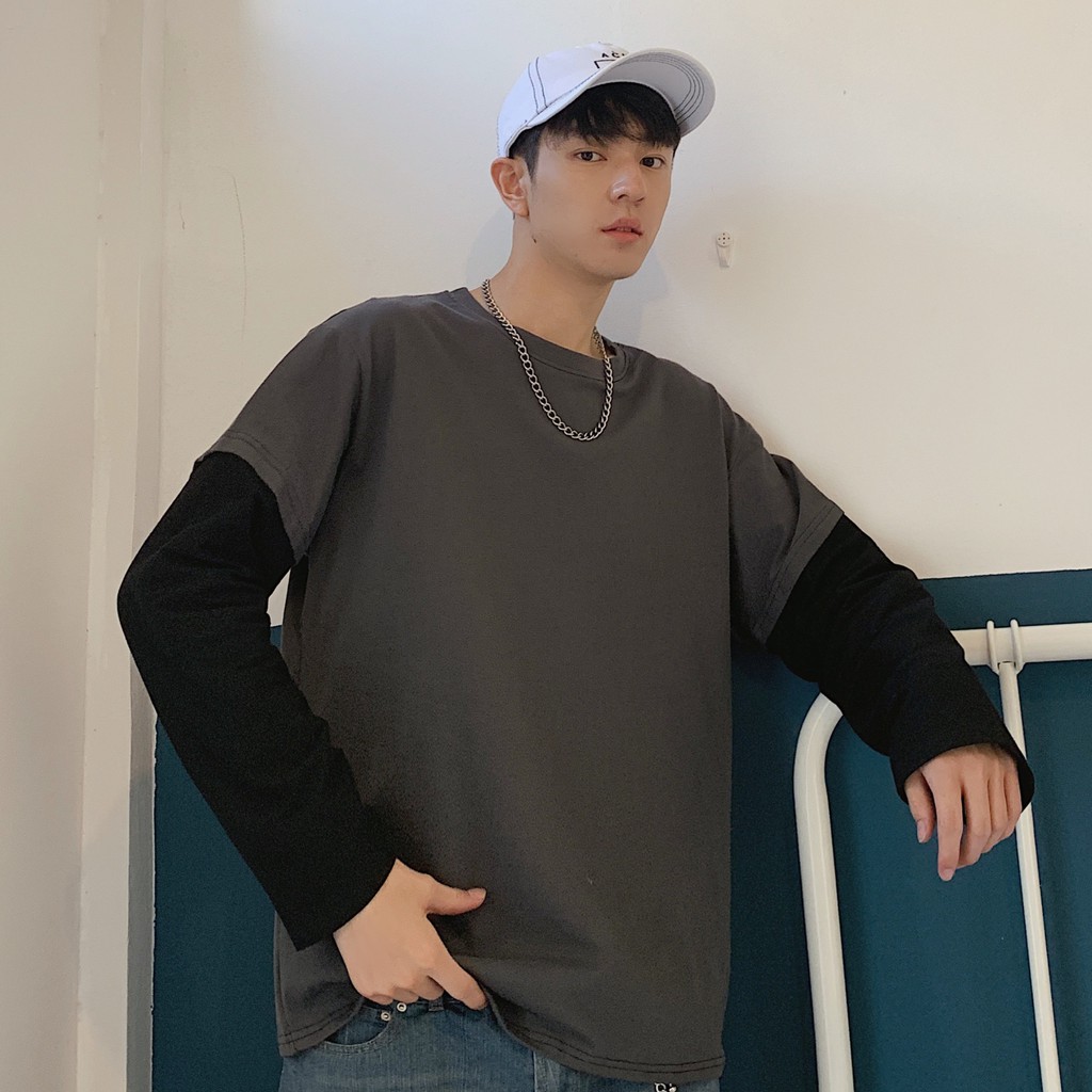 【M世代】多層次穿搭落肩T假兩件落肩長袖上衣短T 寬版 拼接 穿搭必備 落肩 素T 假兩件 T恤 (CEHA55)
