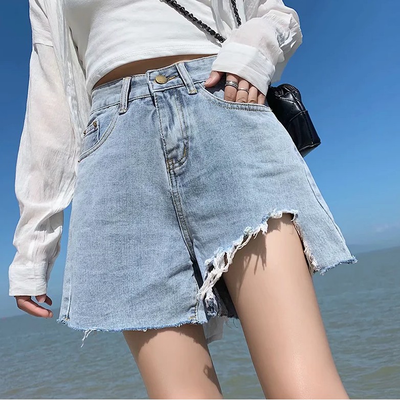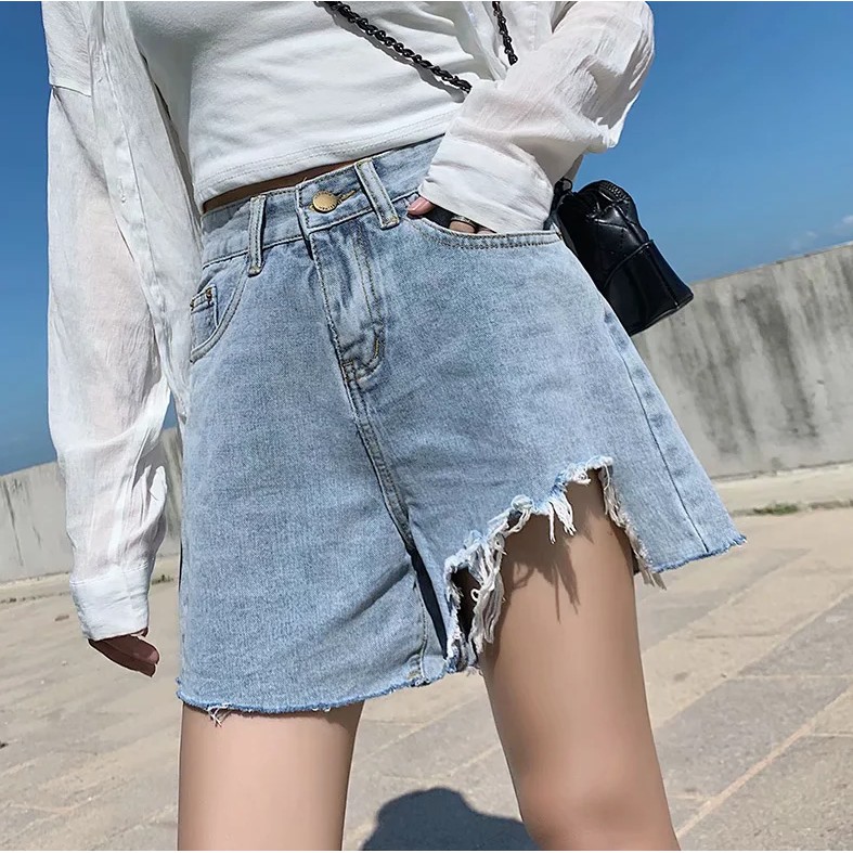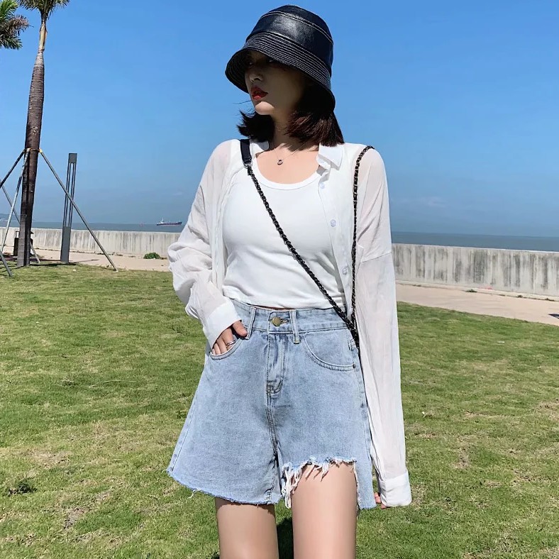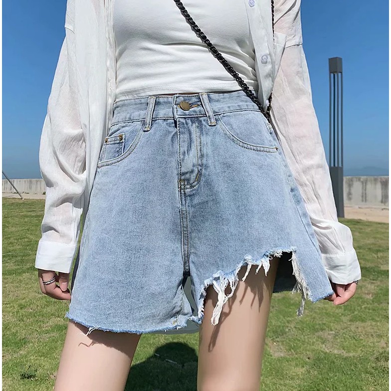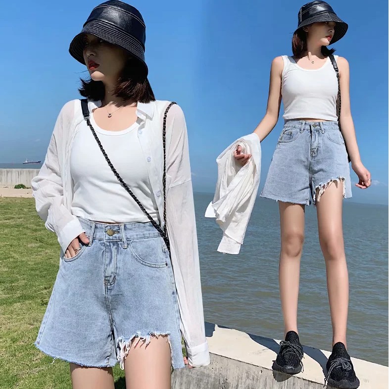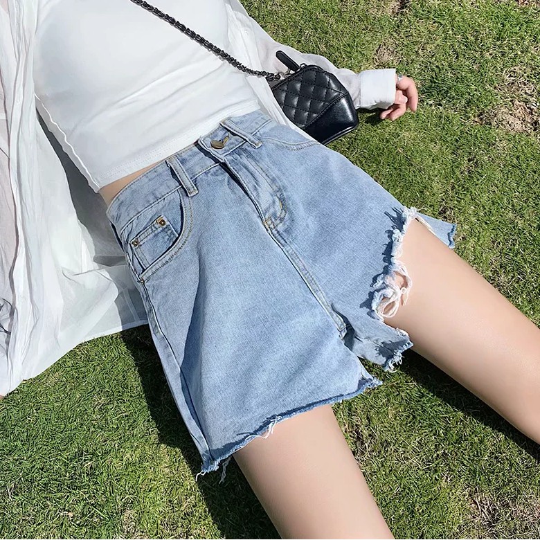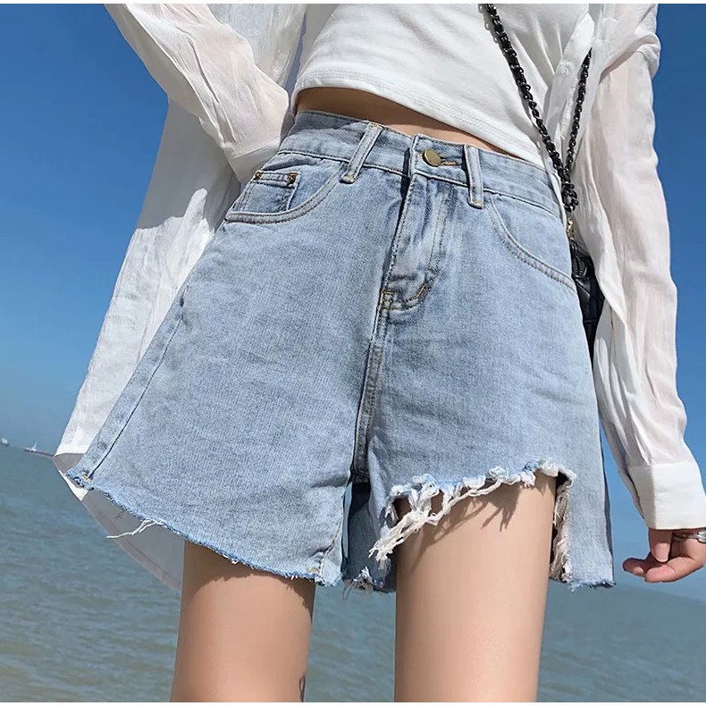 【M世代】大尺碼丹寧褲 正韓牛仔褲 短褲 高腰短褲 寬鬆闊腿褲 牛仔破洞短褲 女 夏季百搭 卷邊牛仔褲(XGM6037)