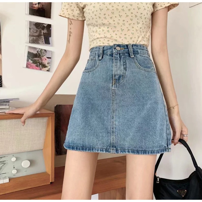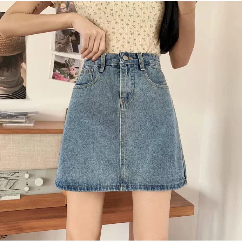 【M世代】大尺碼基礎款 A字裙 牛仔半身裙 夏季韓版高腰顯瘦百搭洗水牛仔半身短裙a字裙女 女生衣著(XGY8801)