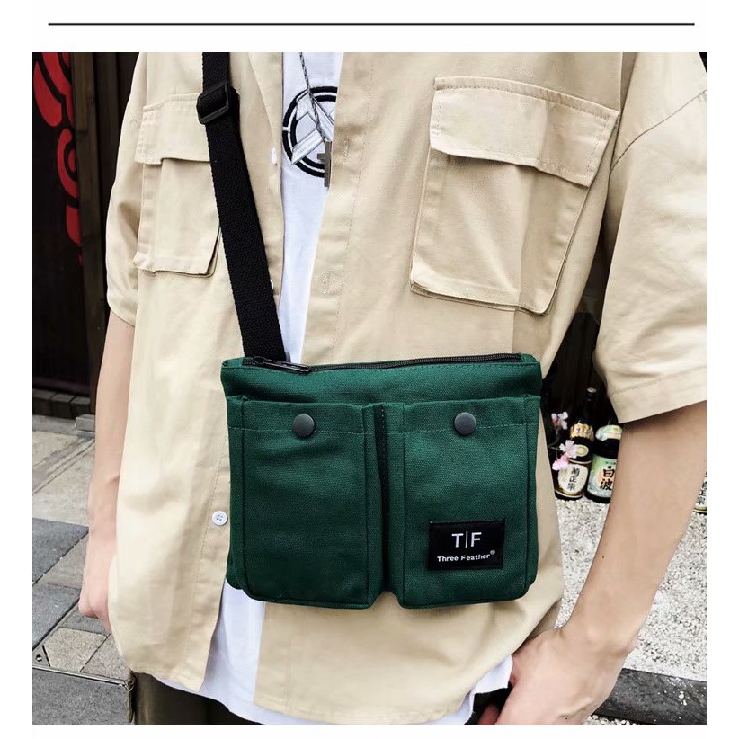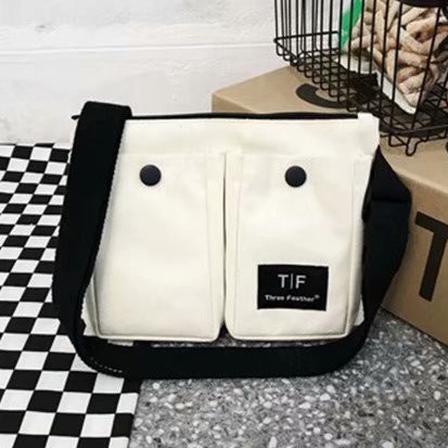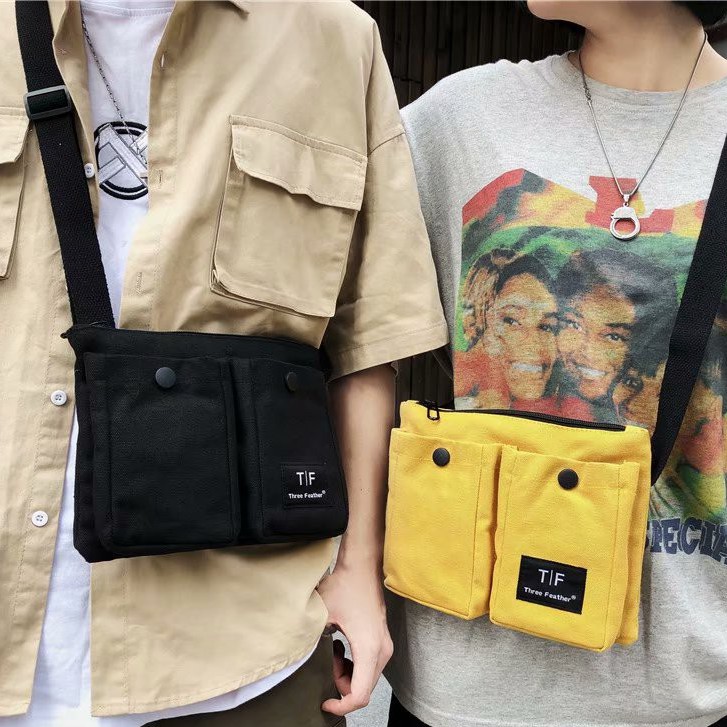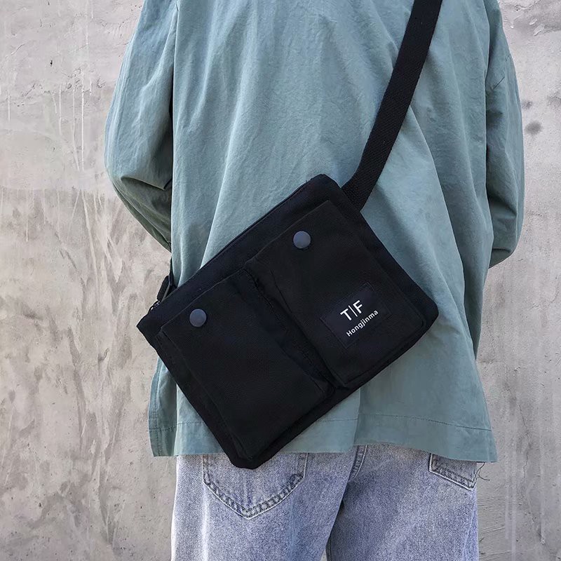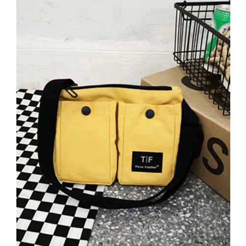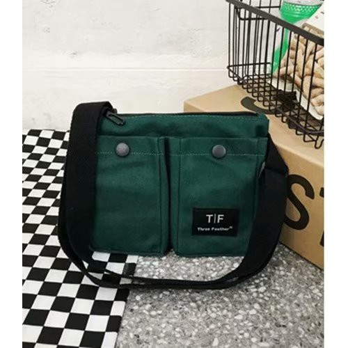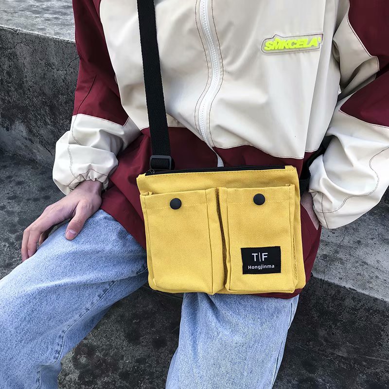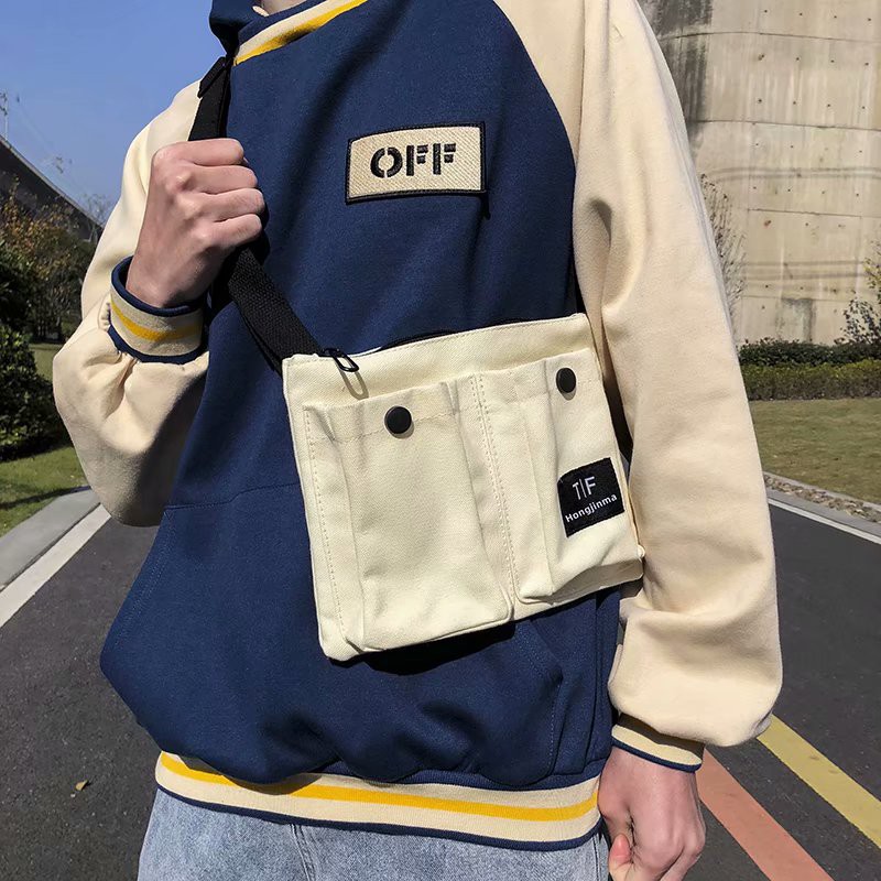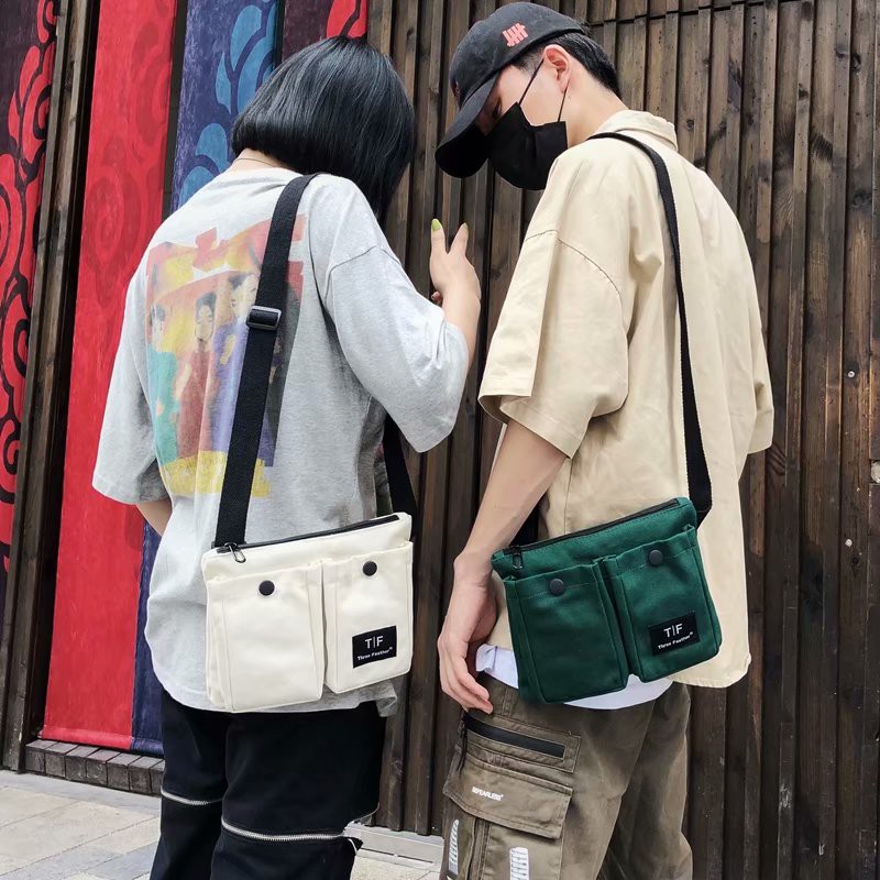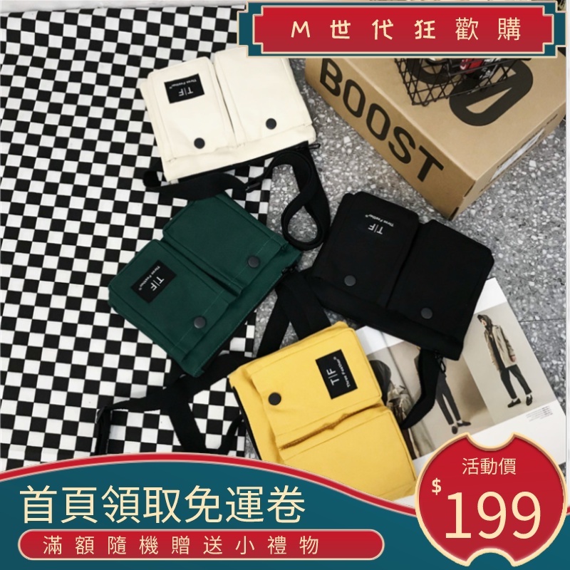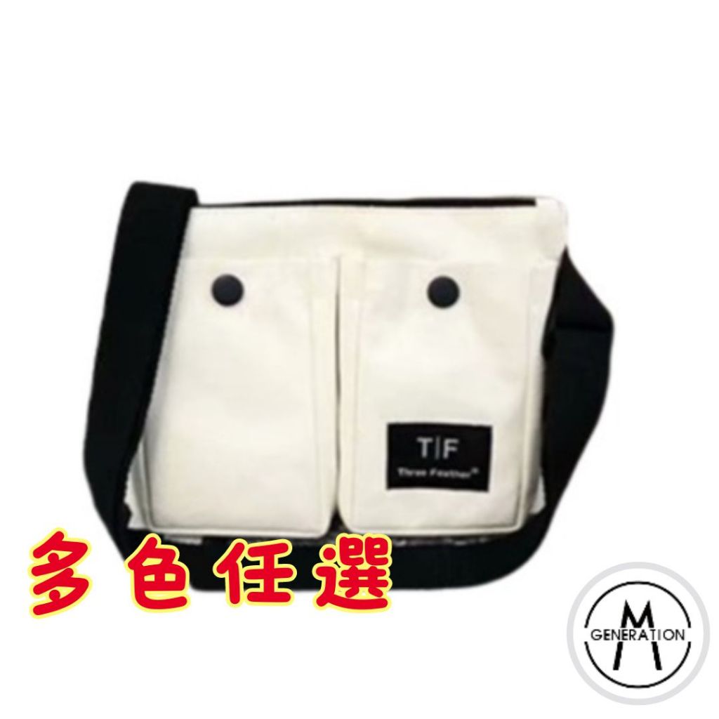 【M世代】4色入選 兩口袋斜跨包 百搭帆布包 學生男女同款單肩包包(WWB05)