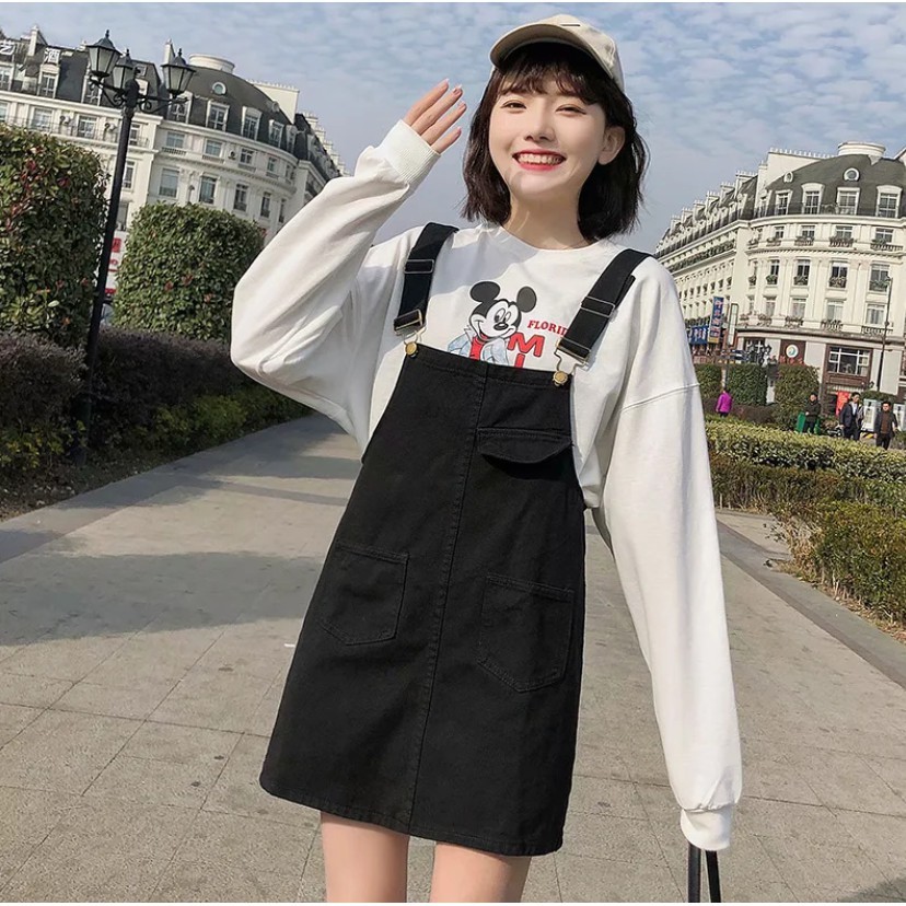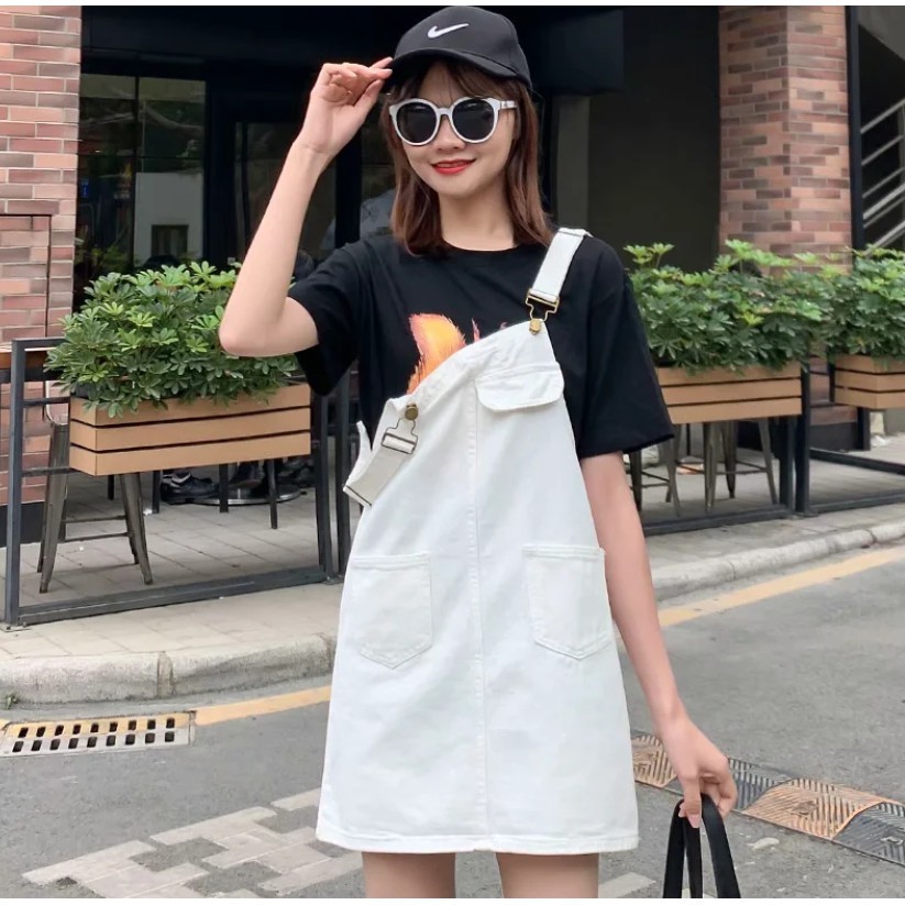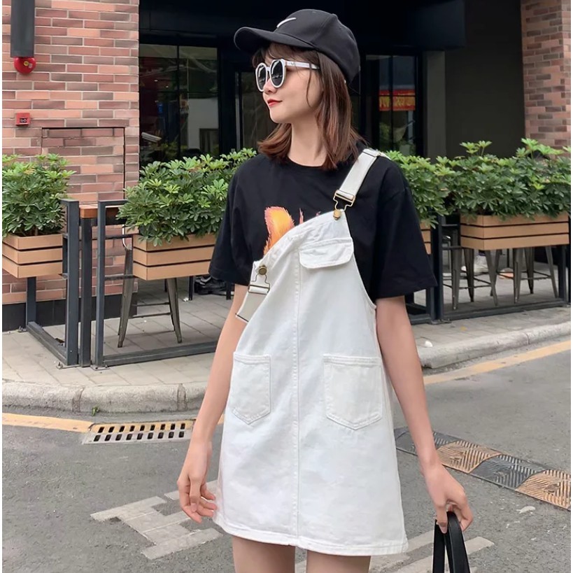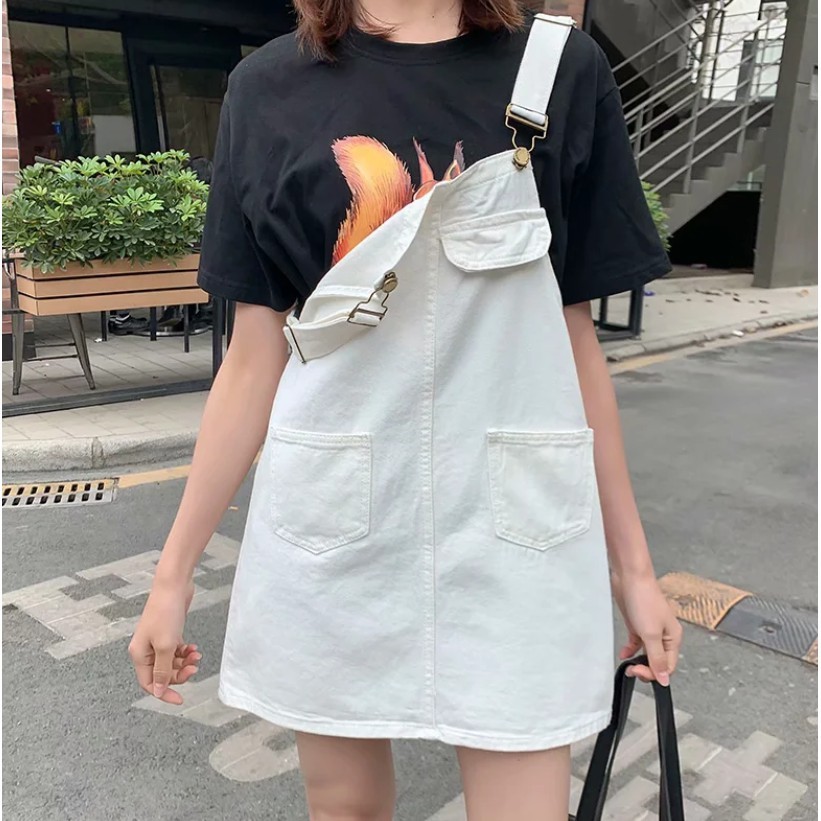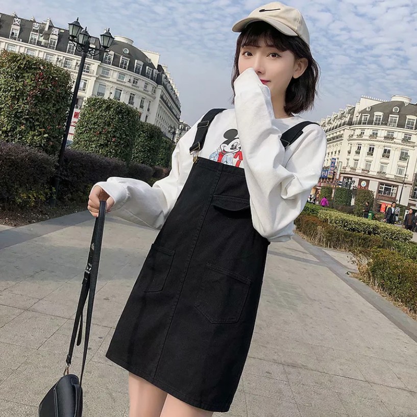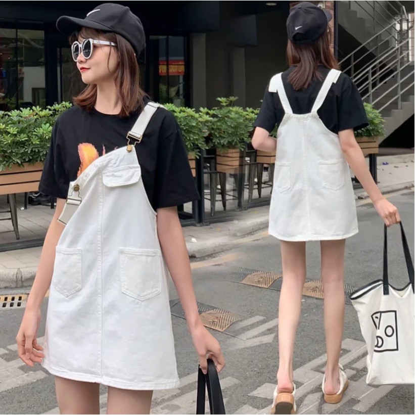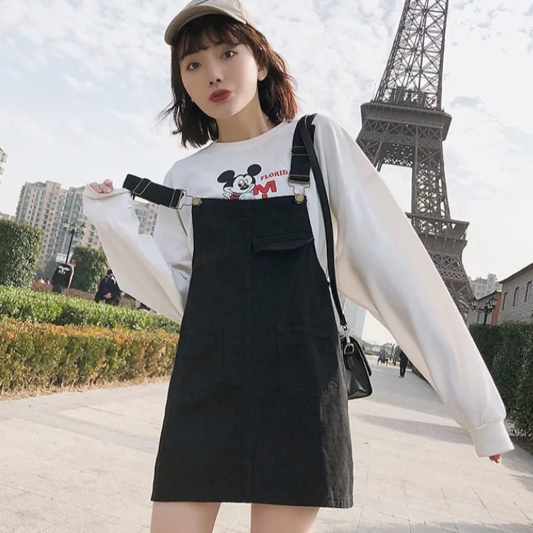 【M世代】大尺碼寬鬆顯瘦牛仔背帶裙韓版大碼胖mm學生減齡吊帶短裙(XGY6609)