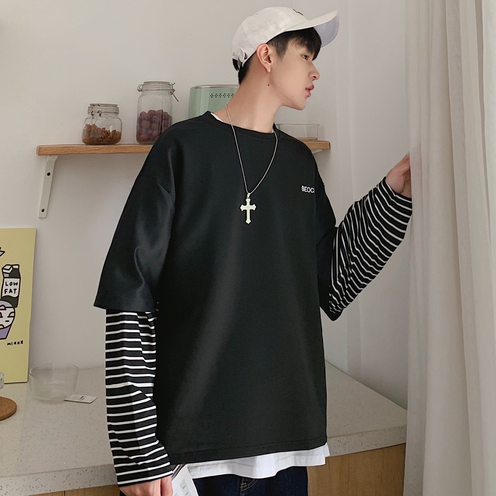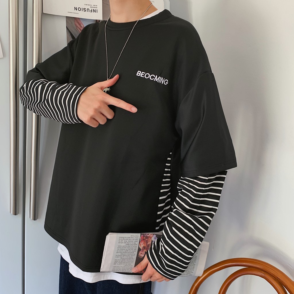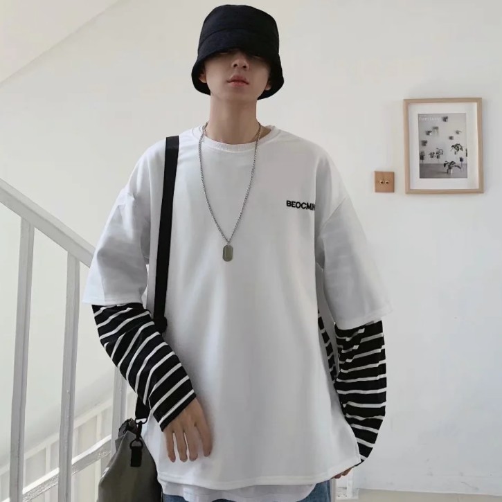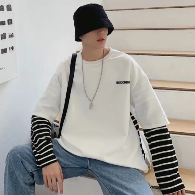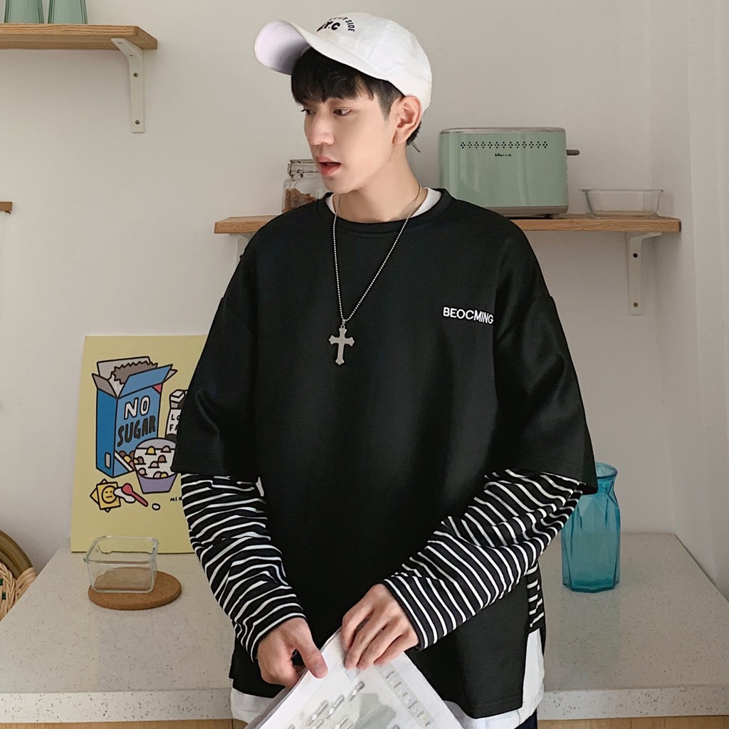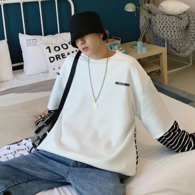【M世代】多層次穿搭落肩T假兩件落肩長袖上衣短T 寬版 拼接 穿搭必備 落肩 素T 假兩件 T恤 (CEHA52)
