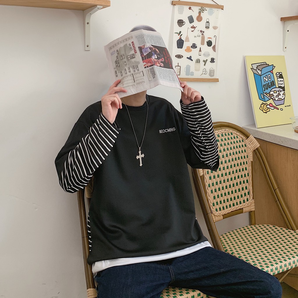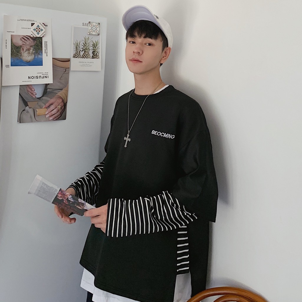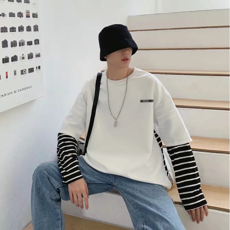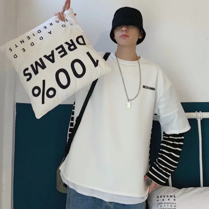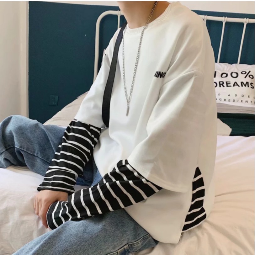 【M世代】多層次穿搭落肩T假兩件落肩長袖上衣短T 寬版 拼接 穿搭必備 落肩 素T 假兩件 T恤 (CEHA52)