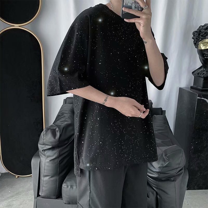 【M世代】星空T 純棉bling閃閃發光短袖男女原宿bf情侶 短T寬鬆前短後長(CEHA209)