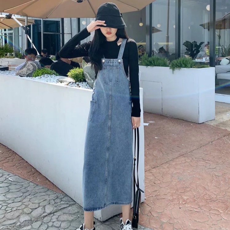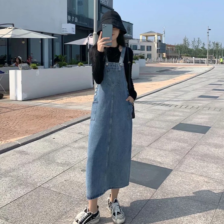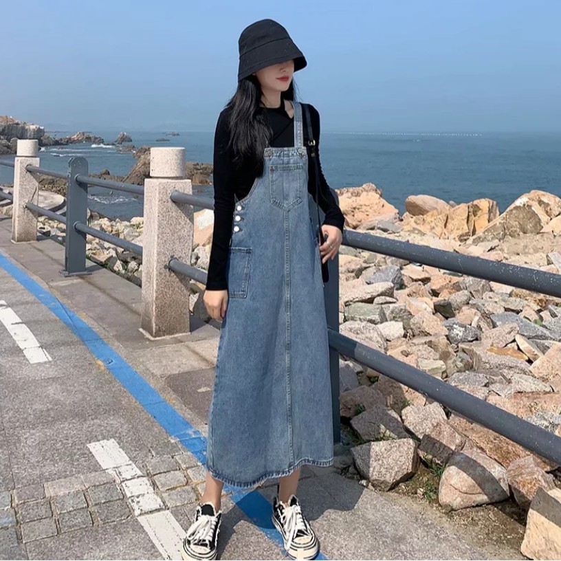 【M世代】大尺碼韓版顯瘦吊帶長裙 超美設計牛仔吊帶裙(XGM8853)